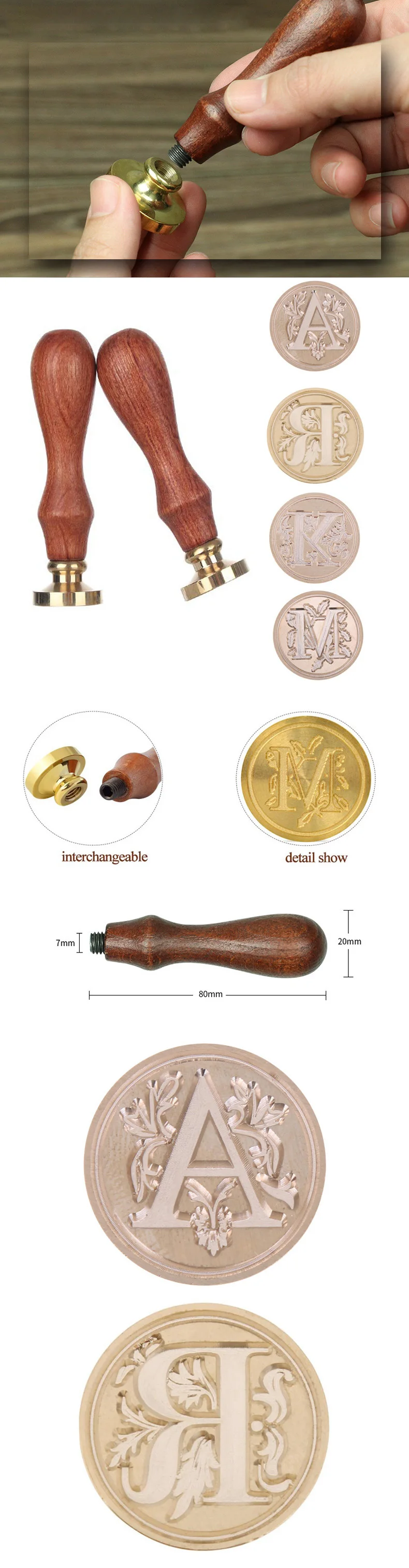 Ретро 26 букв A - Z Воск Печать Алфавит Письмо Ретро деревянный штамп Винтажный конверт запечатывание Медная головка DIY Скрапбукинг