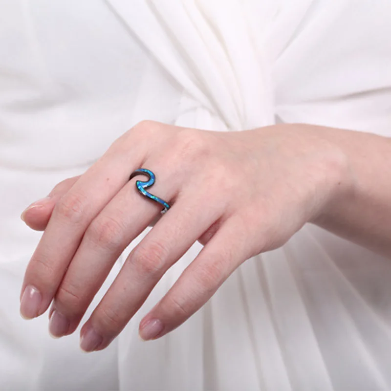 RE Fire Opal, черное заполненное кольцо, геометрический дизайн, синяя волна, форма, обручальное кольцо, пересекающееся, женское кольцо, импортные товары, ювелирные изделия