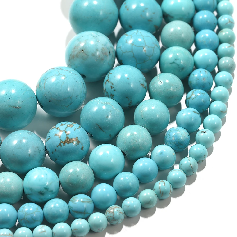 1 нитка оптовая продажа бусины из натурального камня гладкие натуральные синие бирюзы Круглые бусины для изготовления ювелирных изделий 4 6 8 10 12 мм