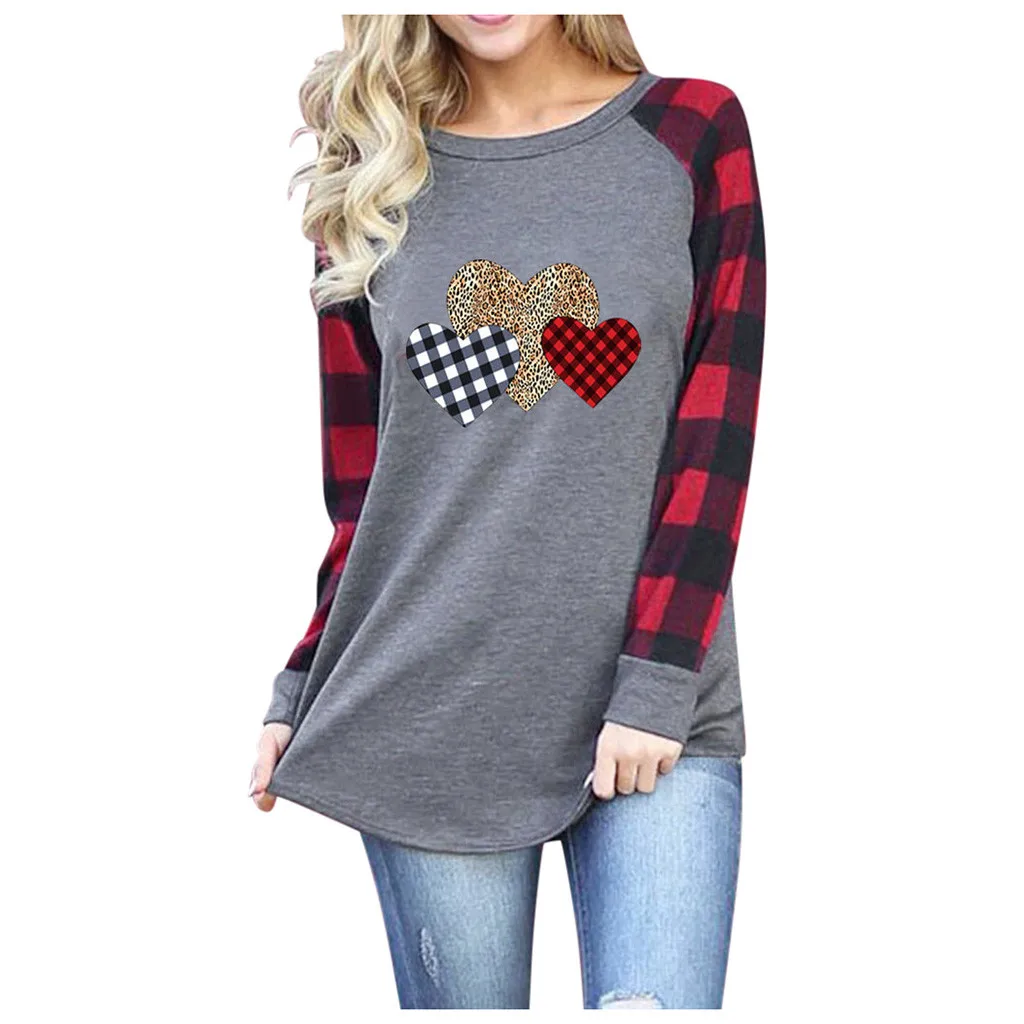 Новая женская футболка Harajuku, футболка с принтом сердца, топы с длинным рукавом, винтажная Женская одежда, футболка lange mouw dames luipaardprint % F07