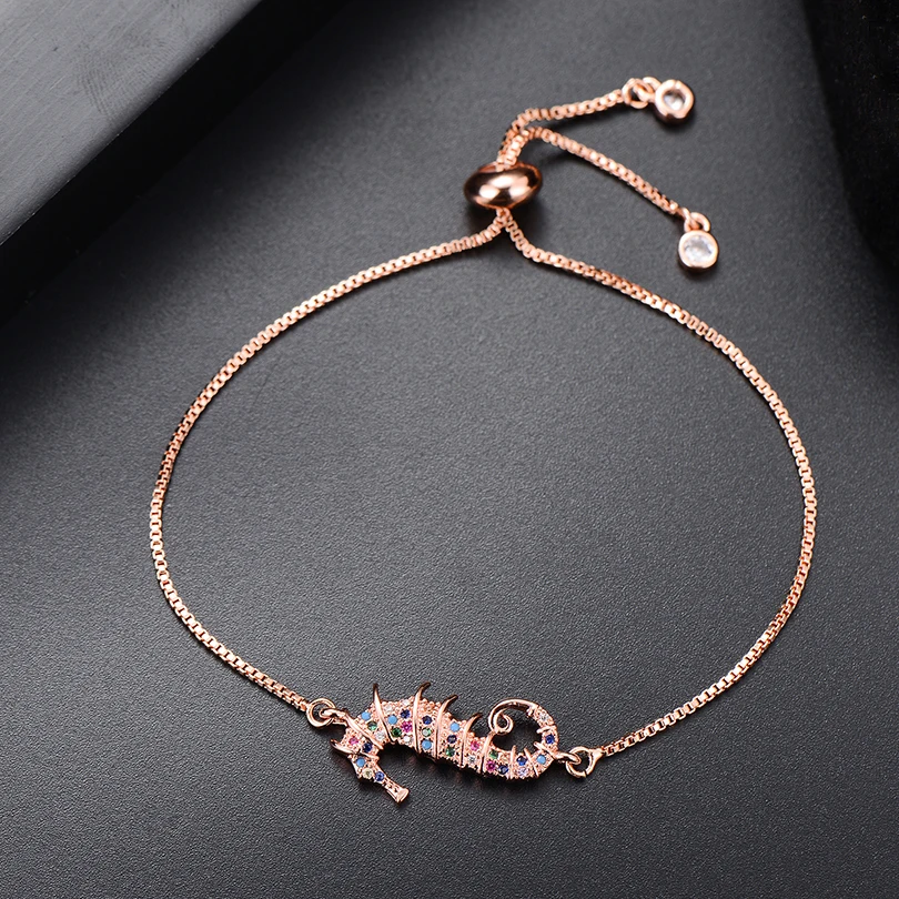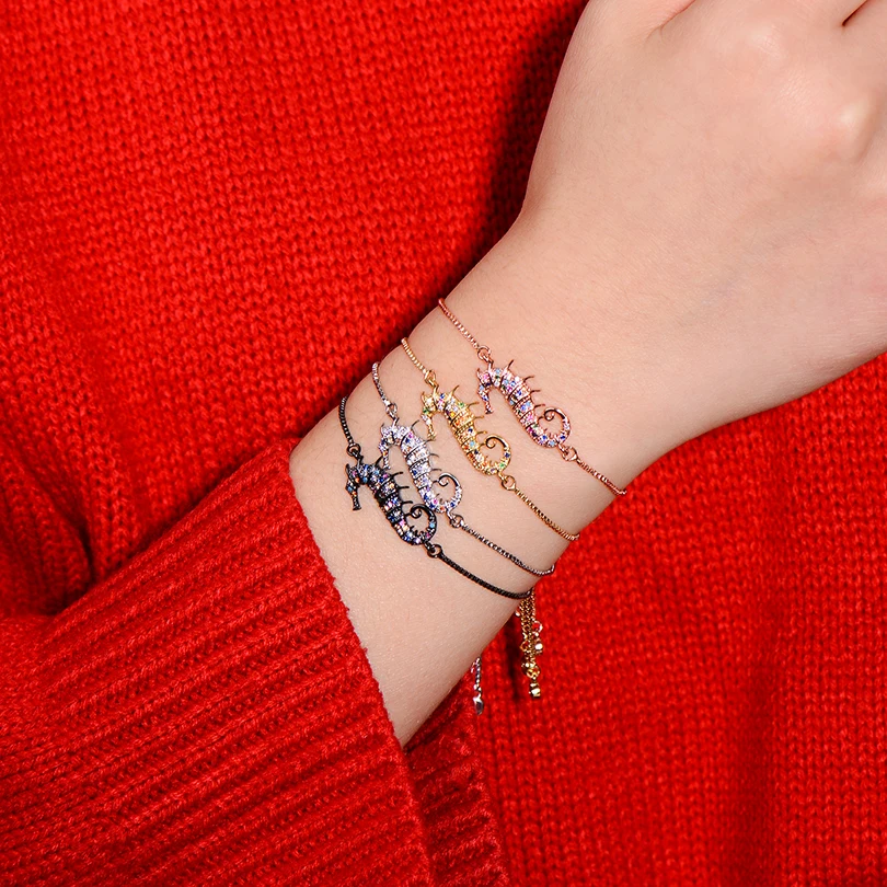 Название: модный браслет из фианита и гиппокампа с цепочкой-слайдером для женщин, браслет в виде морской лошади, модный ювелирный подарок Бренд: 100% новый Материал: медь и фианит Для: женщин Регулируемый Размер: 16-28 см