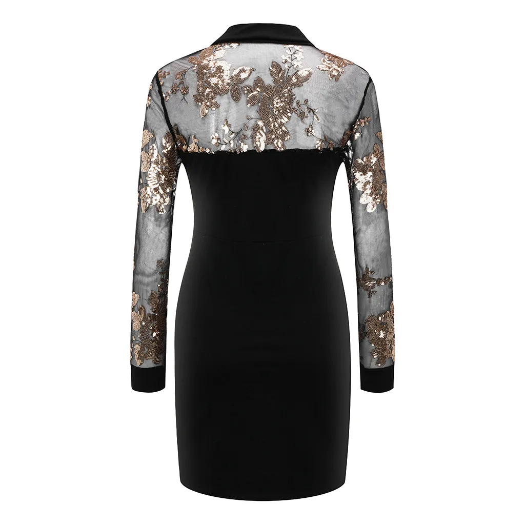 Женское облегающее платье с блестками, Сетчатое Повседневное платье с длинными рукавами, в стиле пэчворк