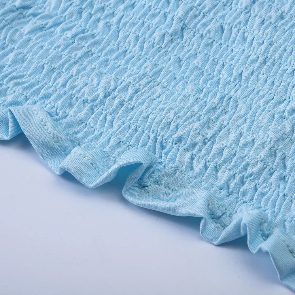 Особенности: с рюшами, с бантом, с открытыми плечамиОднотонная пикантная одеждаСтильный и модный дизайн; Летние повседневные топы.