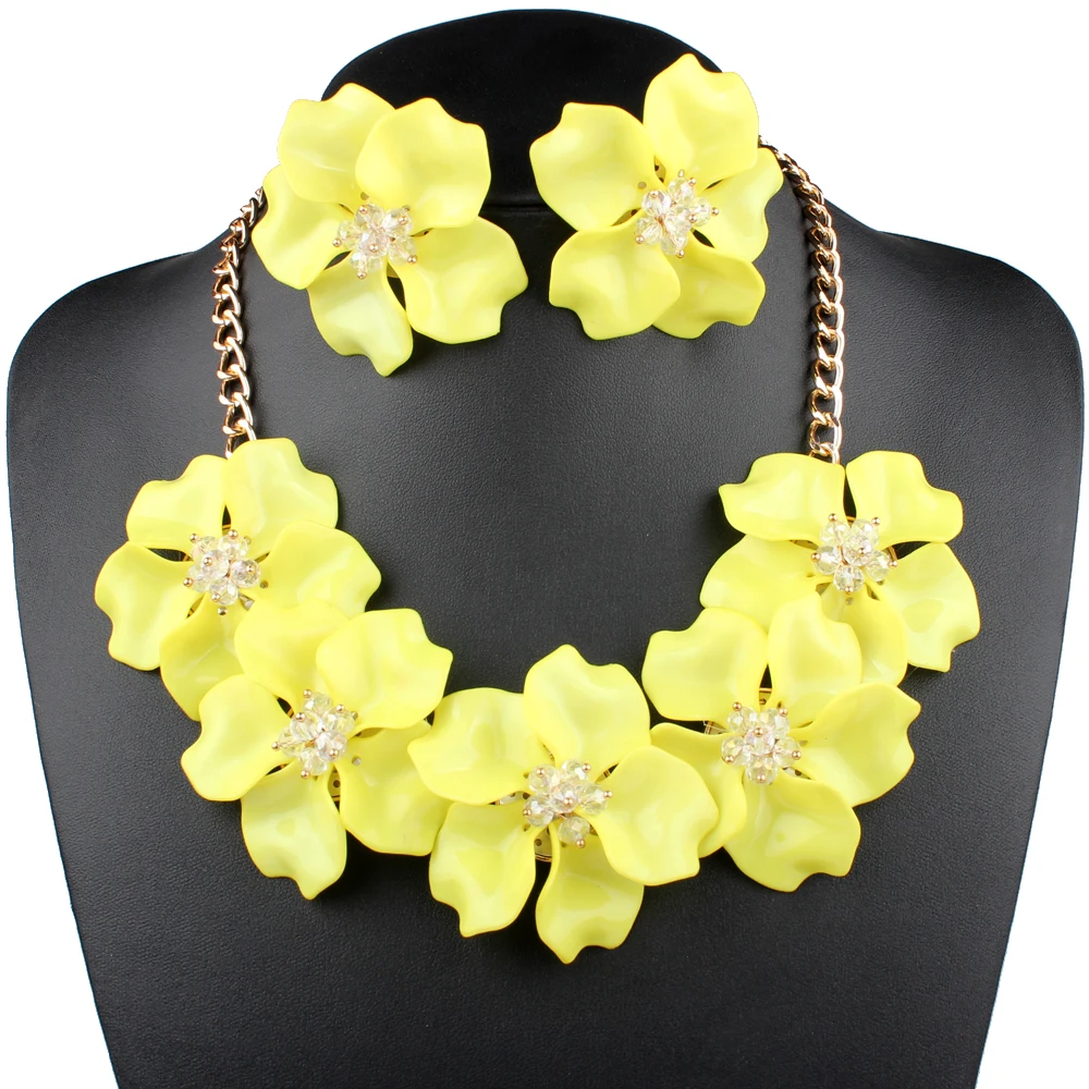 На фотографиях ниже ожерелье с большим цветком показывает реальный эффект сбоку. Ювелирный Набор имеет так много вариантов цвета, красный, черный, белый, желтый, розовый, синий красочные цветочные серьги ожерелье, всегда есть тот, который вам нравится. ^_^