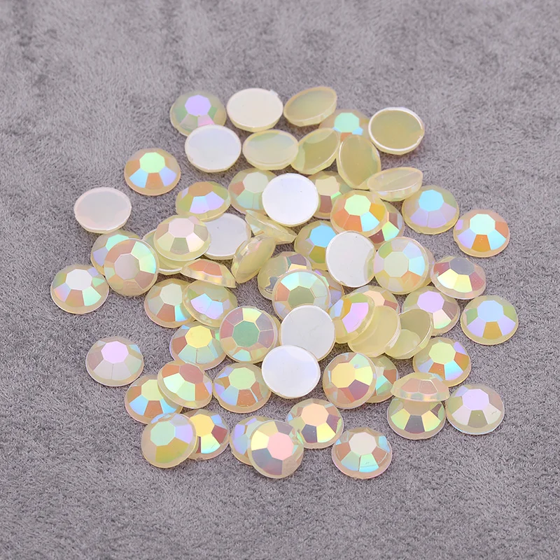 JUNAO 6 7 8 mm Yellow AB Glitter Round Rhinestones Flatback Acrylic