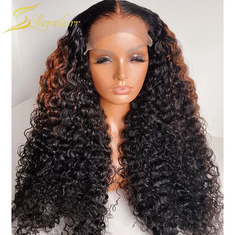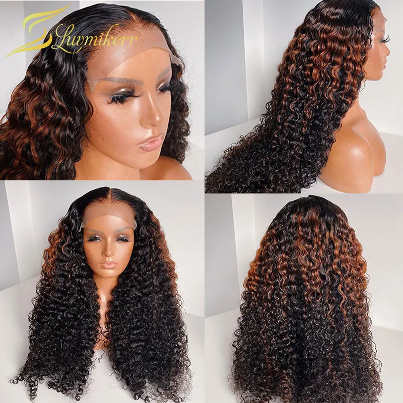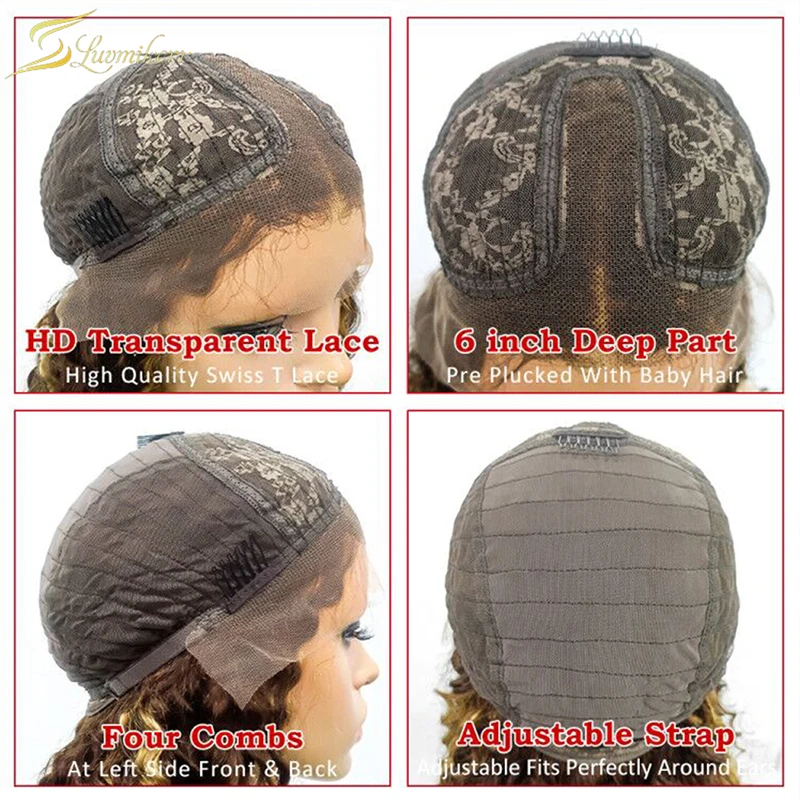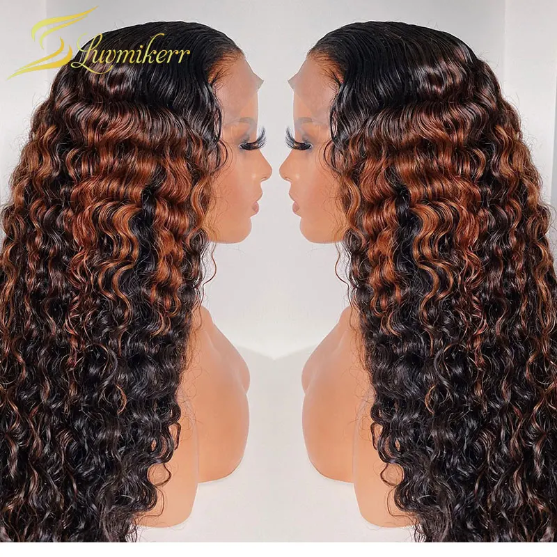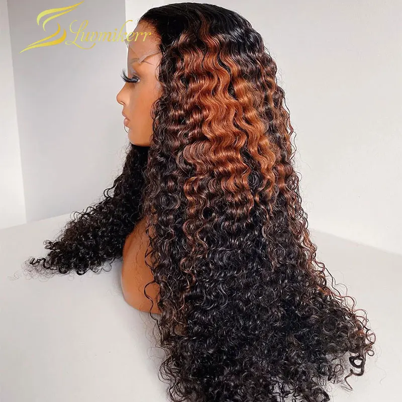 Кудрявые Парики с глубоким волнистым фронтальным париком, Омбре, коричневый блонд, кружевные передние человеческие волосы, парики для женщин, цветные HD Full 13x6 preprucked 30 дюймов