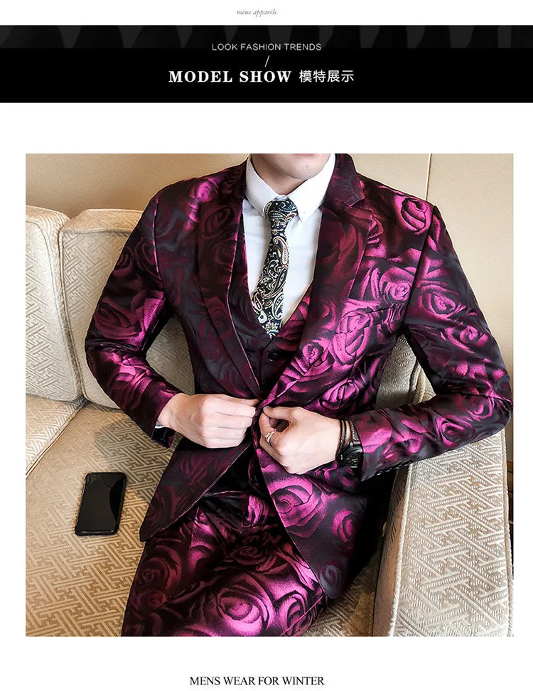 (Пиджак + жилет + брюки) Розовый Смокинг Uomo Groom деловой мужской костюм смокинг зауженный клубный костюм для выпускного вечера Abito Uomo Cerimonia