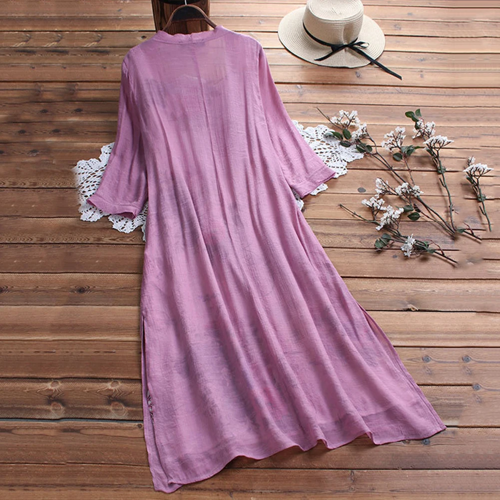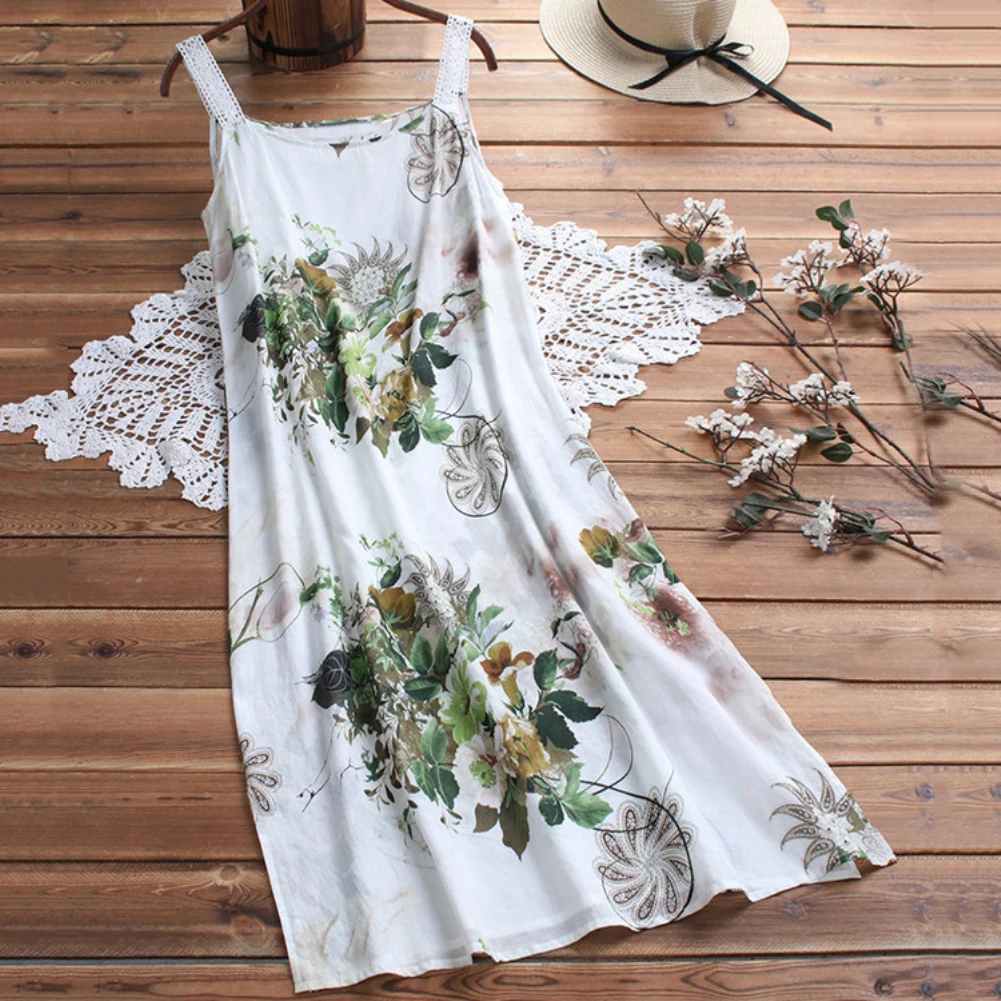 2 шт./компл. женское платье оверсайз из хлопка и льна с цветочным принтом без