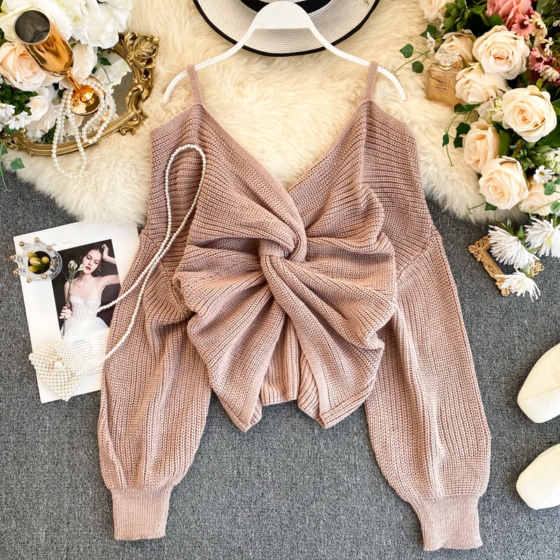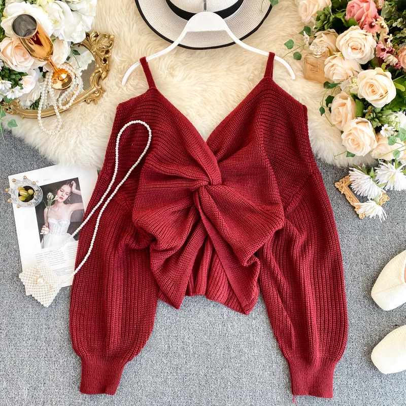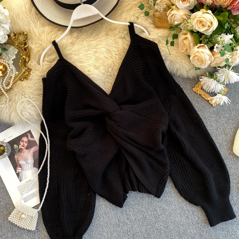 Женский трикотажный свитер с кружевом белый пуловер длинным рукавом и V-образным