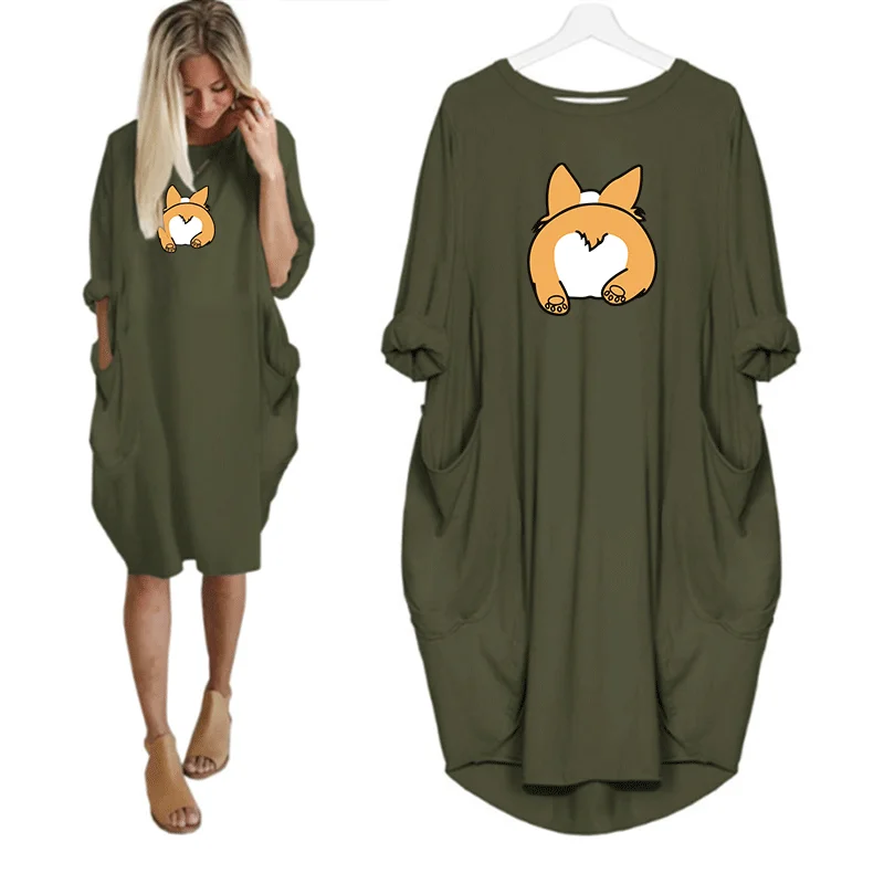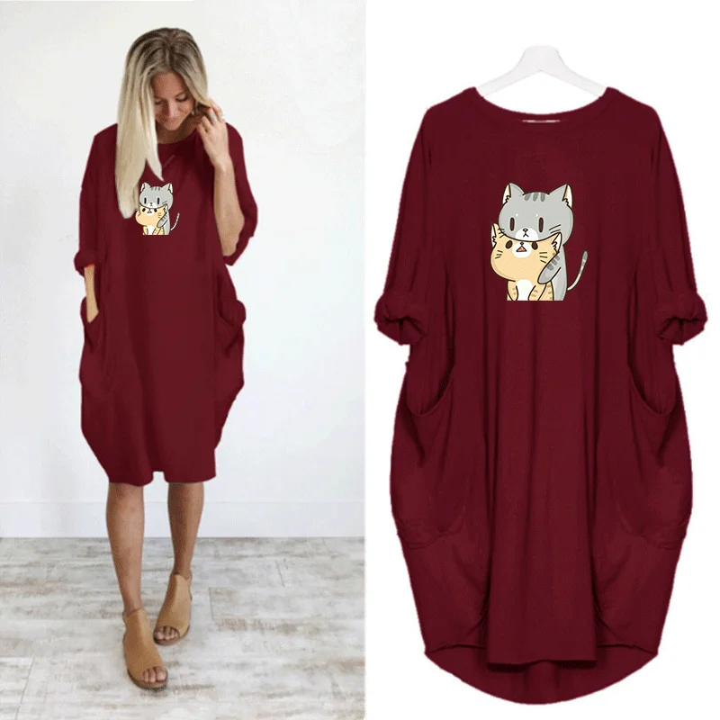 Женское платье с милым принтом кота, собаки, карманом, повседневные, свободные, винтажные, вечерние, осенняя одежда для девочек, Kawaii, женские платья размера плюс M-5XL 2020