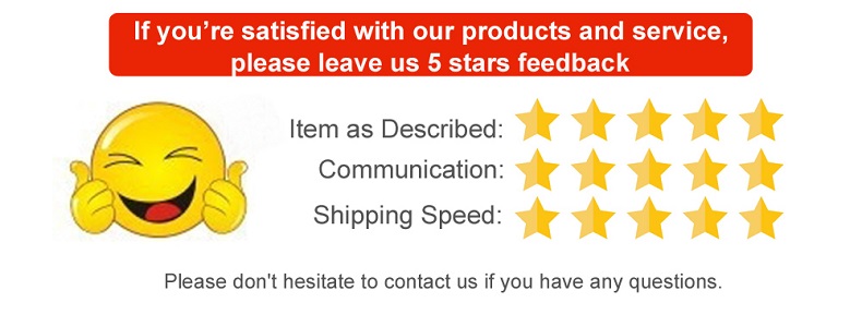* Если вы остались довольны нашим товаром и сервисом, пожалуйста, оставьте нам положительную оценку в 5 звезд, который очень важен для нас. Мы будем очень признательны, что вы можете оставить здесь свои настоящие ощущения.