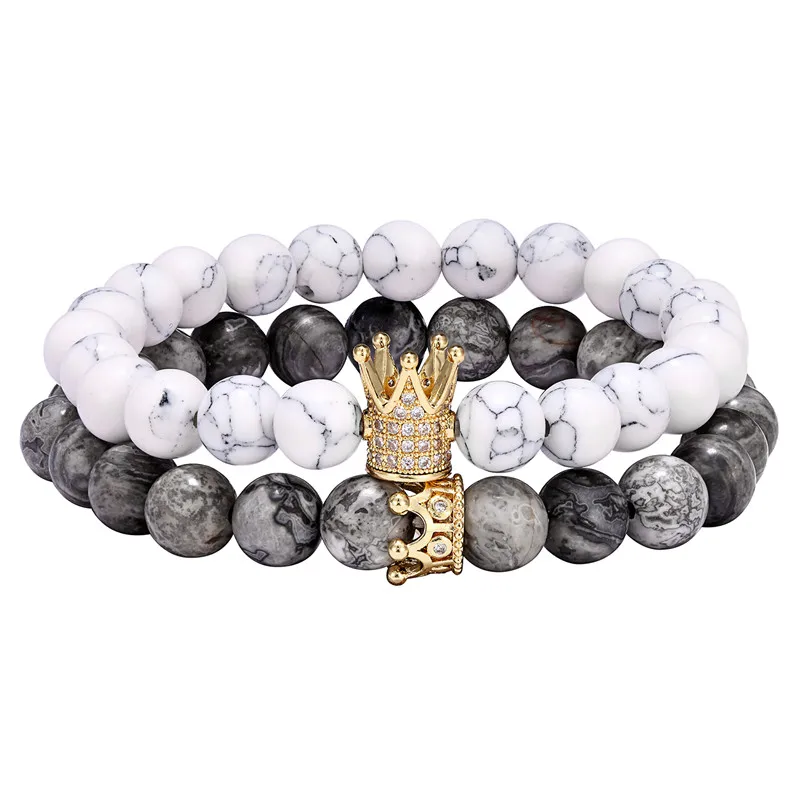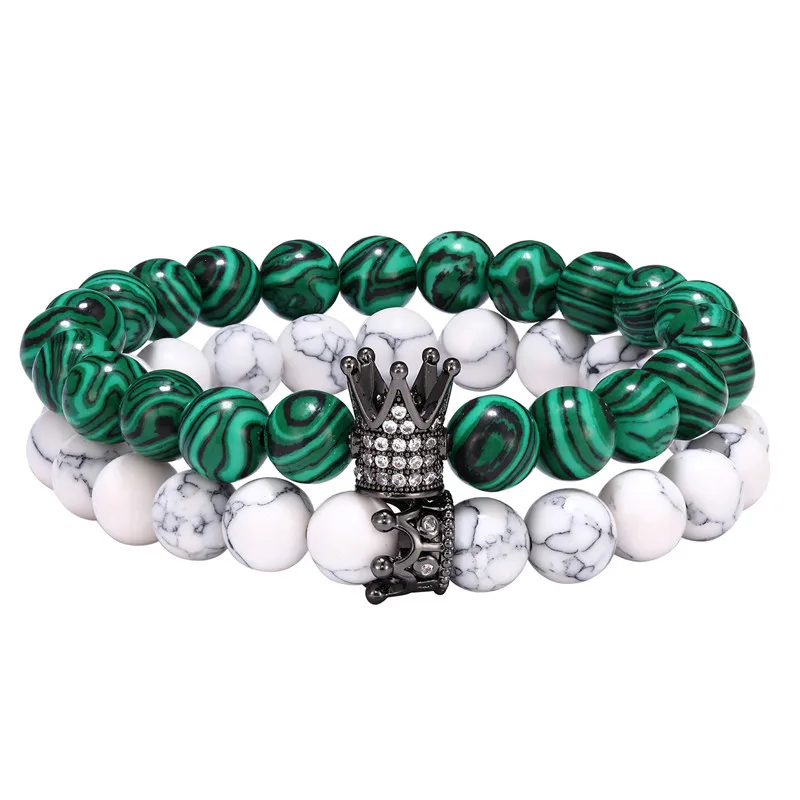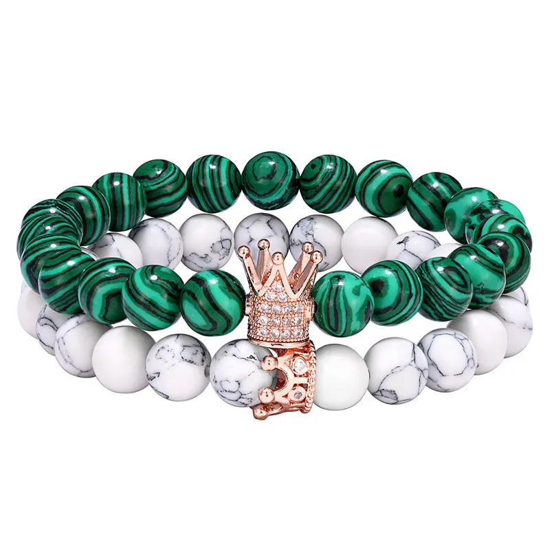 Тип изделия: пара браслетов Материал: медная Корона, 8 мм натуральный камень Размер: 19 см, если вам нужен другой размер, пожалуйста, оставьте нам сообщение. Пользовательская поддержка Случаи: Свадебные/вечерние/Выпускные/юбилейные Подарок для: невесты/подружки невесты/рождества/новогоднего подарка Стандартная среда: гипоаллергенный, без свинца и без никеля