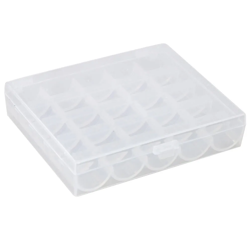 Храните катушки для швейных машин в этой пластиковой коробке.