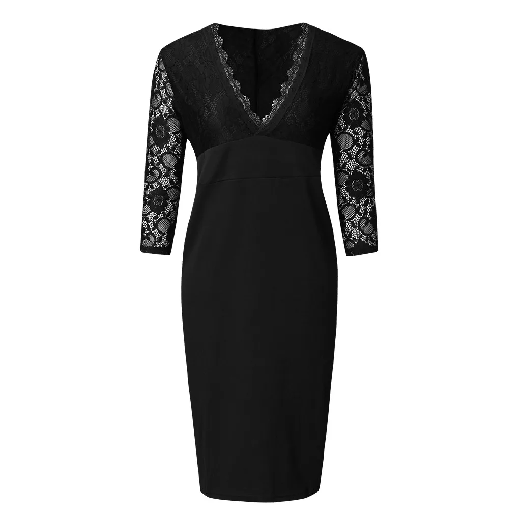 Женское сексуальное кружевное платье с v-образным вырезом и длинными рукавами с высокой талией размера плюс