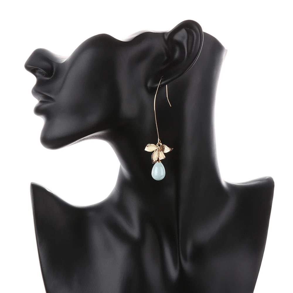 1 пара, цветок, Орхидея, имитация зеленого жемчуга, вязанный крючком крючок, свисающие, женская мода, богемный стиль, золотые серьги, пирсинг, ювелирные изделия, подарки