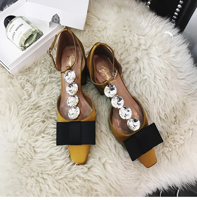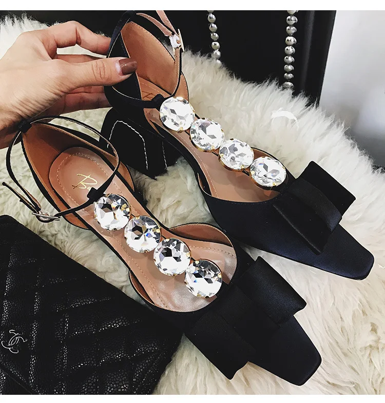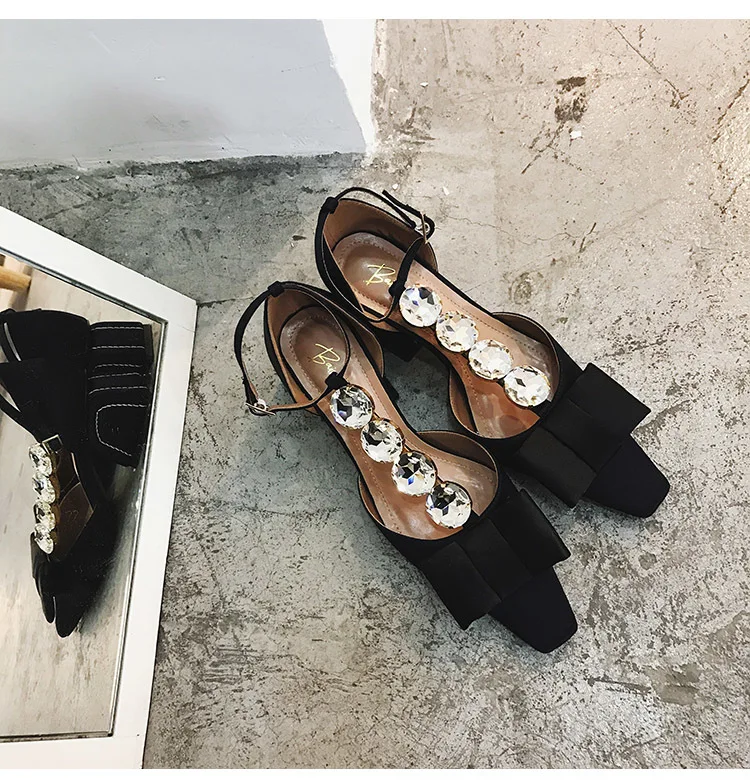 Средней высоты; сандалии на каблуке Для женщин Стразы Sandalias Mujer 2019 лук sandalia feminina Летние женские туфли удобные Модная zapatos De Mujer; большие размеры