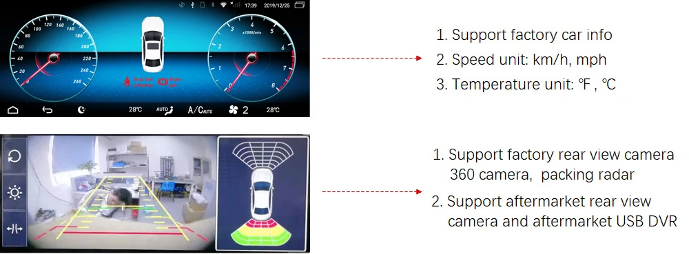 Поддержка всех оригинальных функций NTG, таких как заводское радио, gps-навигация, bluetooth, DVD/CD,USB,SD и т. д., поддержка заводской камеры заднего вида обратного траектории. Камера 360, дверная открывающаяся, совместима с оригианловым джойстиком, сенсорной мышью и управлением рулем, совместима с оригинальной звуковой системой и оптическим волокном, проигрывает аудио без потерь.