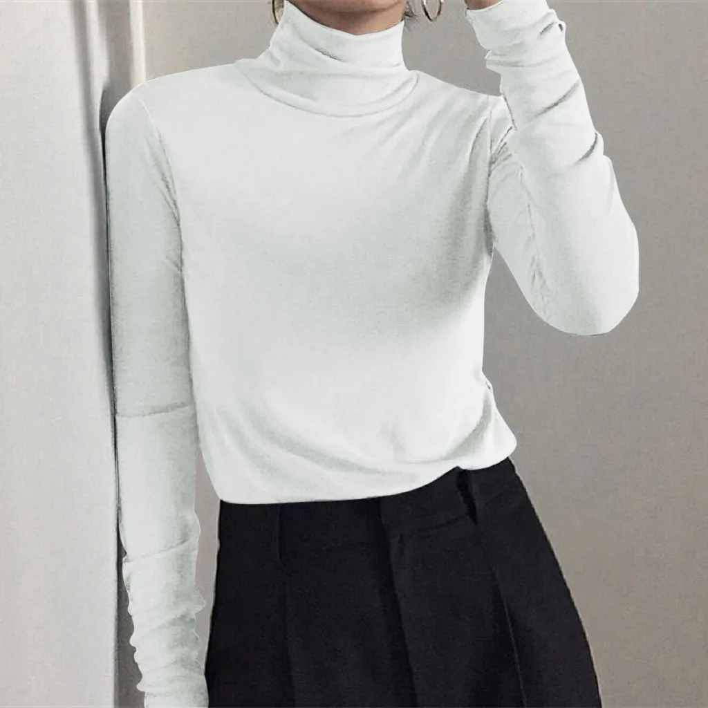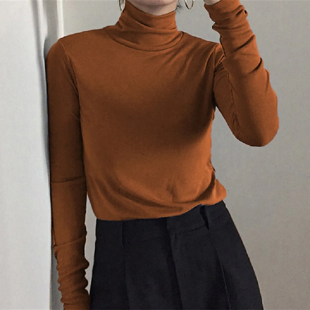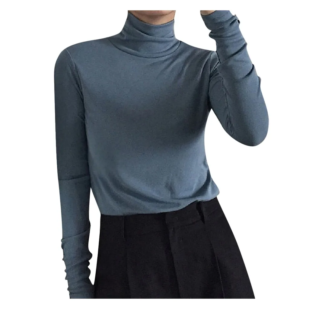 Женская Повседневная водолазка, однотонные облегающие топы, рубашка с длинными рукавами, блузка
