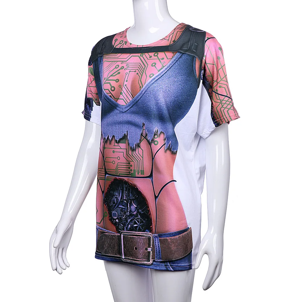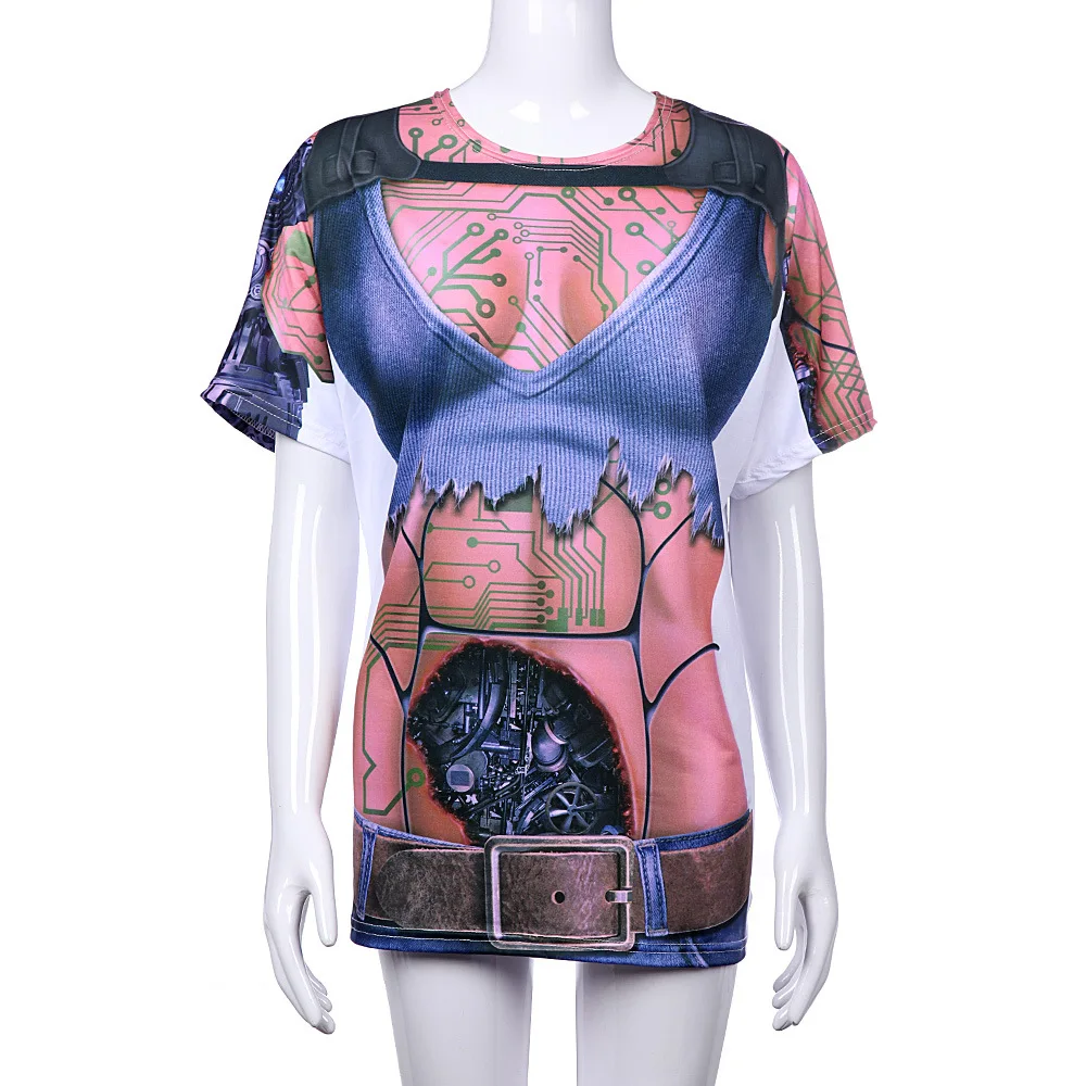 Для взрослых, стимпанк, тяжелый металлический механизм, 3D принт, футболка для девушек, металлическая голова, рок костюм, косплей на Хэллоуин, топ, наряд для женщин