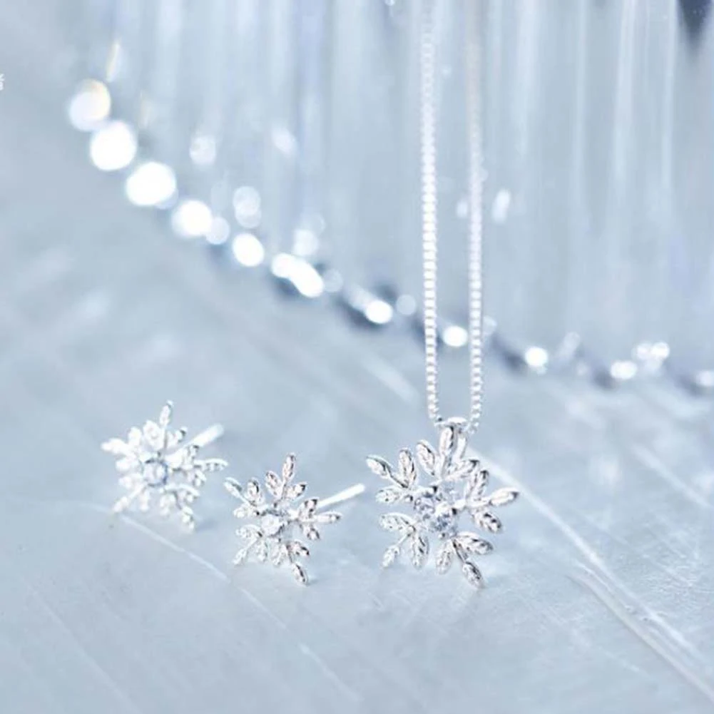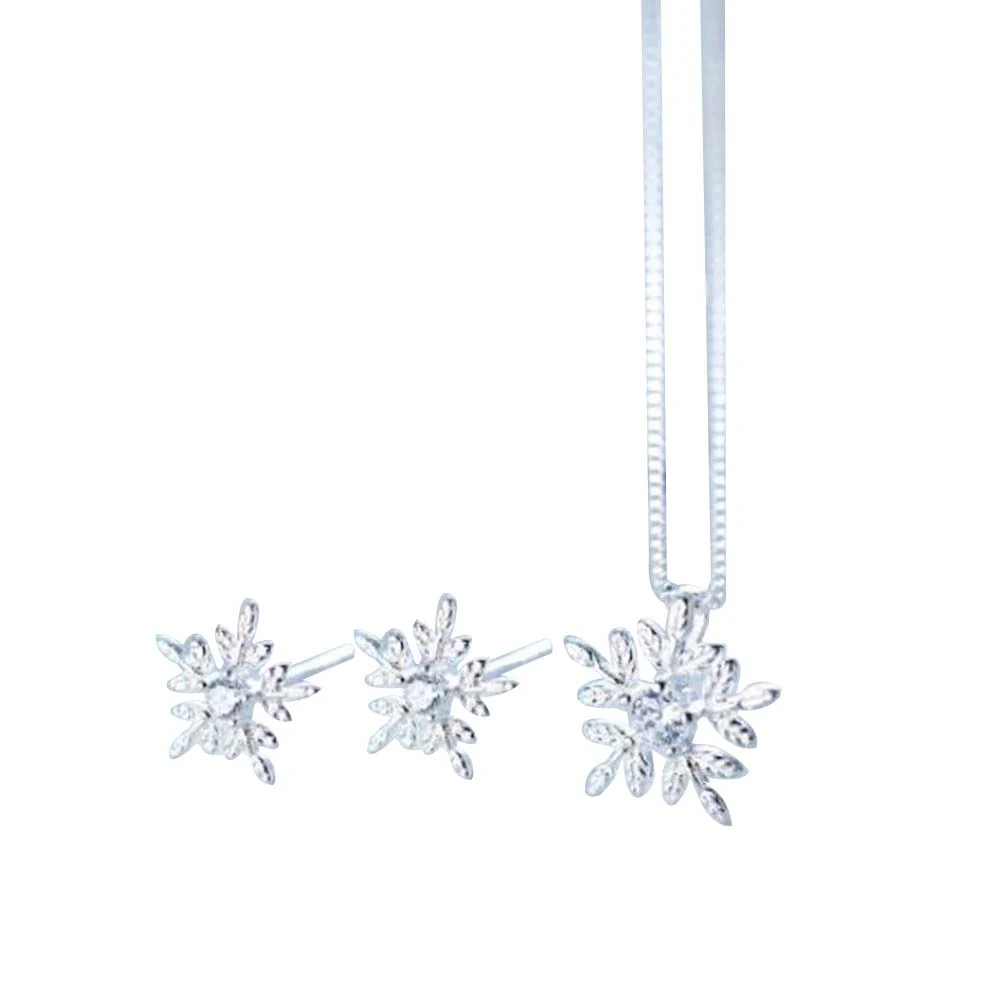 Женский посеребренный кулон Снежинка ожерелье серьги-гвоздики ювелирные изделия Рождественский подарок