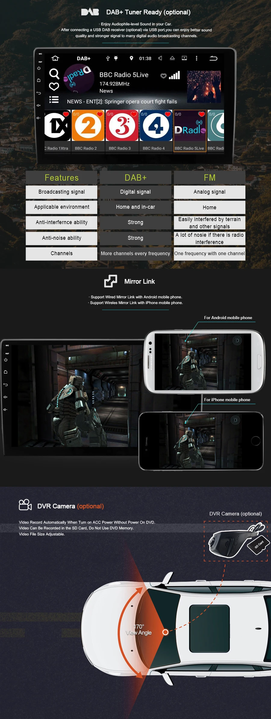 2-DSP Версия 16 ГБ ROM:Четырехъядерный процессор + 2 Гб ОЗУ + Android 10,0 + только Wifi + зеркальная ссылка + DSP3-4G версия 32 ГБ ROM:Четырехъядерный процессор + 2 Гб ОЗУ + Android 9,1 + Wifi/4G сеть + зеркальная ссылка + DSP4-4G версия 64 ГБ ROM:Восьмиядерный + 4 Гб ОЗУ + Android 10,0 + Wifi/4G сеть + зеркальная ссылка + DSP + CarplayПеред покупкой ознакомьтесь со следующим описанием.Описание версии DSP 16 Гб ROMСмотрите так же другие товары: