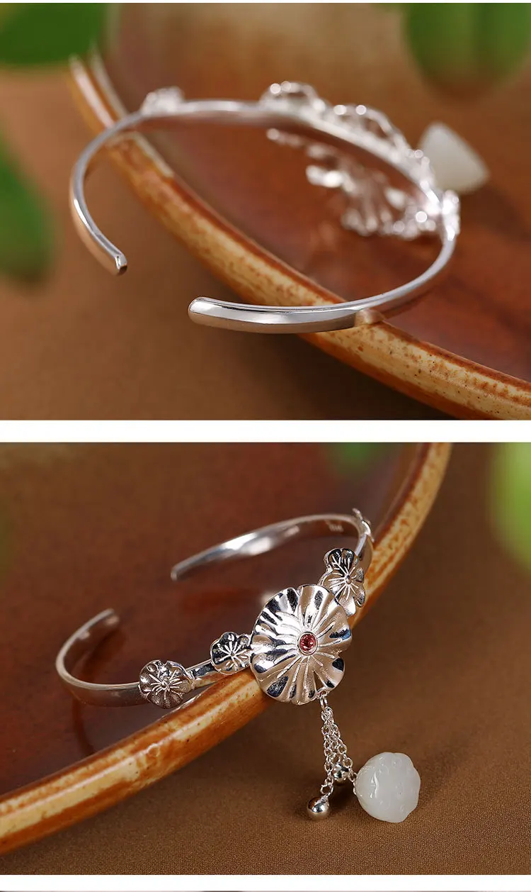 (Ручное измерение: ошибки нормальные) Вес нетто: около 18 г Нефритовый Лотос: около 8x12 мм Длина кисточки: макс. около 28 мм Ширина браслета: около 20 мм Толщина браслета: около 2-4 мм Внутренний периметр около 16 см, открытый, регулируемый Компоненты включает в себя: 1 х браслет Подарочная коробка-1 шт. 1 X ткань для полировки серебра (Не уродливый вообще! Независимо от того, как меняются времена, классические традиционные ювелирные изделия длятся навсегда! Углиless в основном будет работать над этническими иконами и рекламировать китайскую культуру!)
