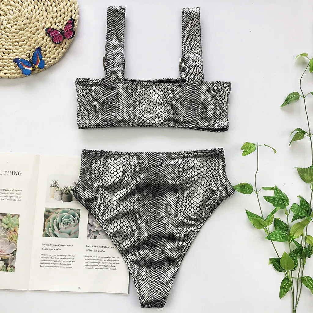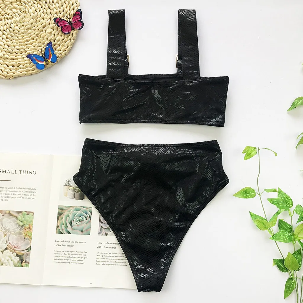 Модный женский сексуальный купальник-бикини чистого цвета с кожаным ремешком