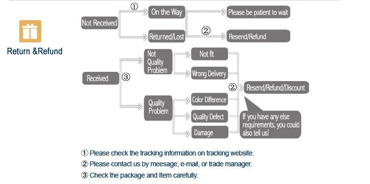 3. Before returning the items, please confirm the return address and the logistics method with us. After you give the items to the logistic company, please send us the tracking number. As soon as we receive the items, we will repair or exchange them ASAP.