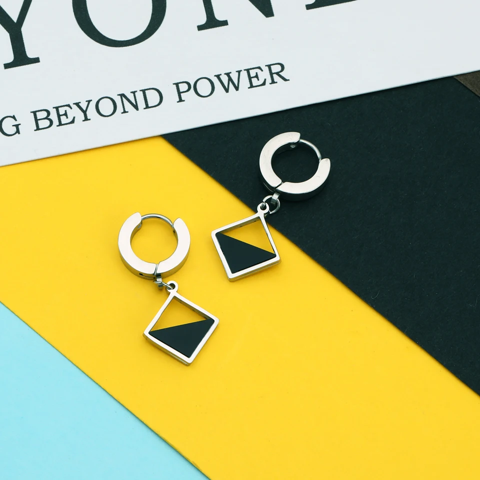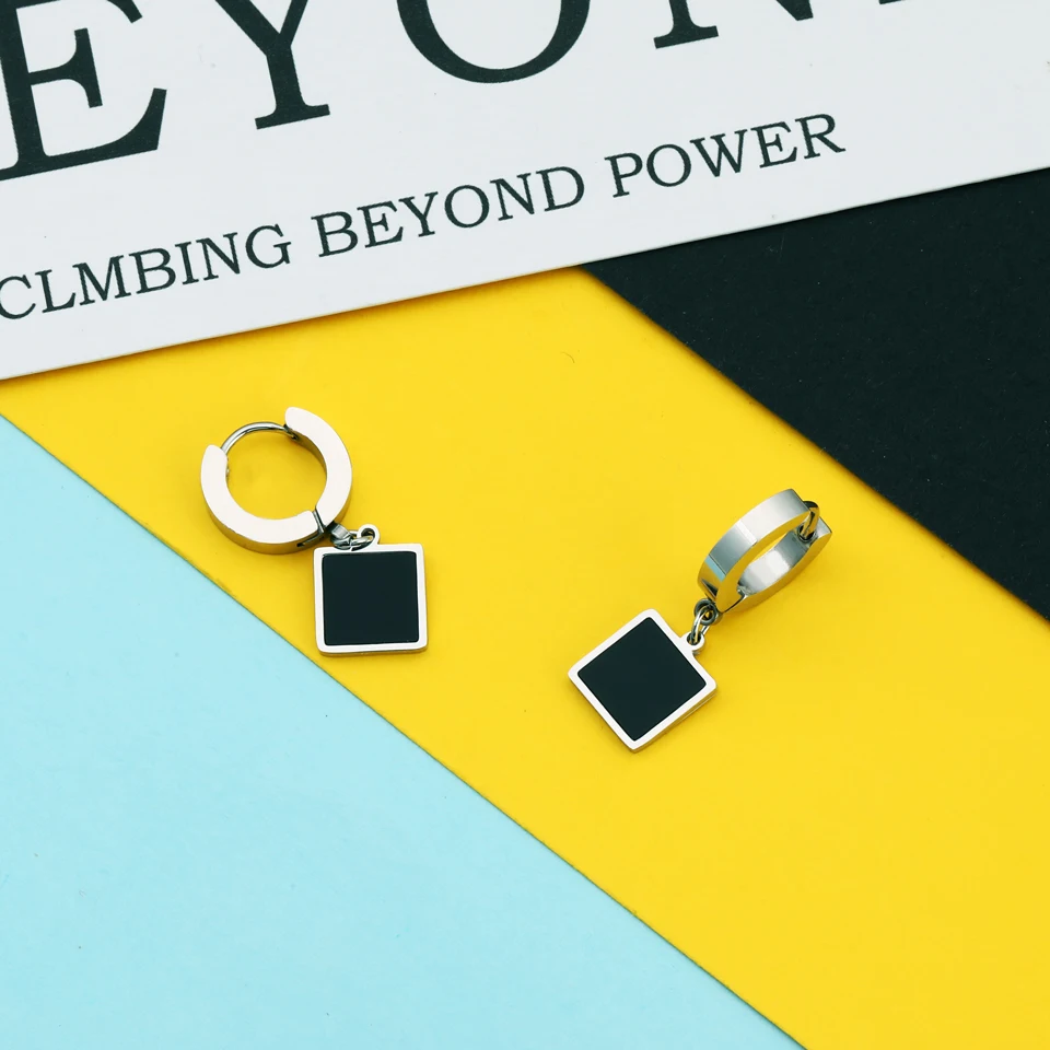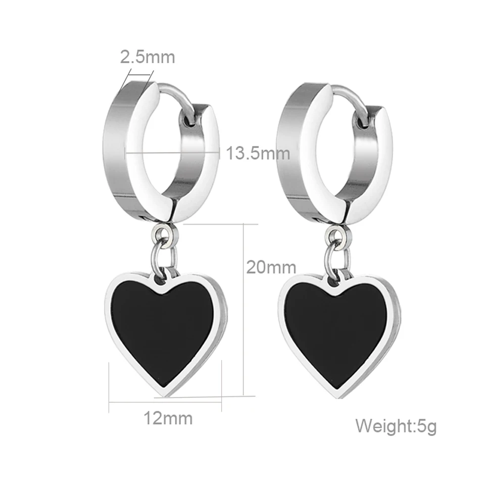 Серебряные серьги-капли из нержавеющей стали с черной эмалью для женщин милые маленькие круглые/Сердце/звезда кулон аксессуары ювелирные изделия Бренд: OFF-XXL ювелирные изделия Материал: высококачественные серьги из нержавеющей стали