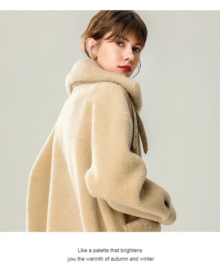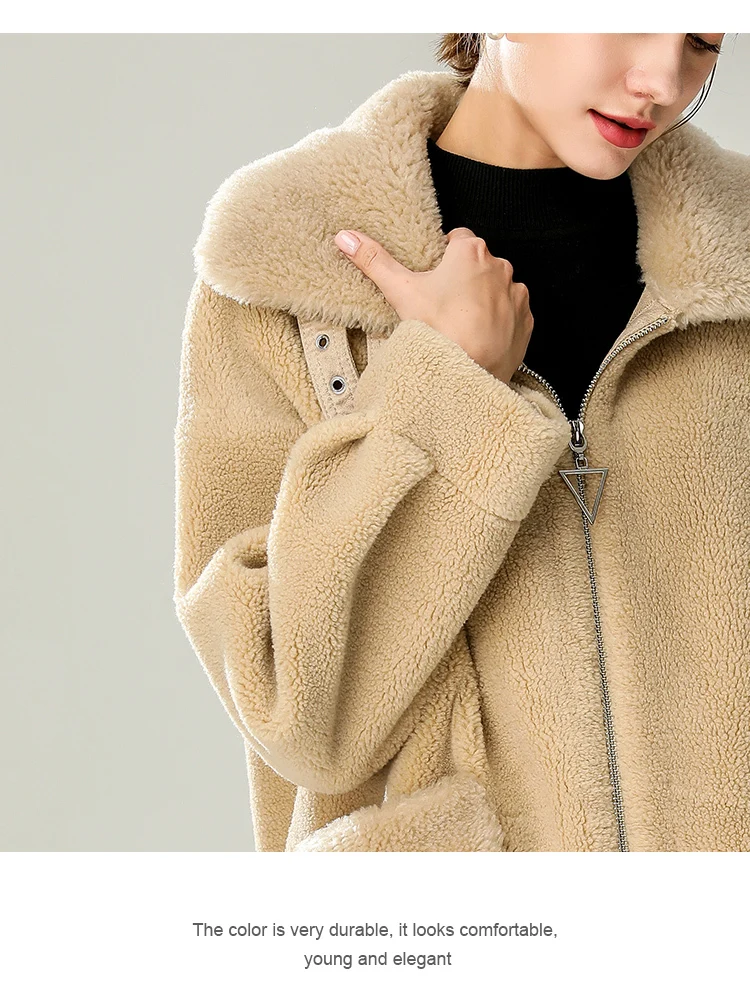 Пальто женское зимнее из натуральной овечьей шерсти с лисьим воротником A19003 |