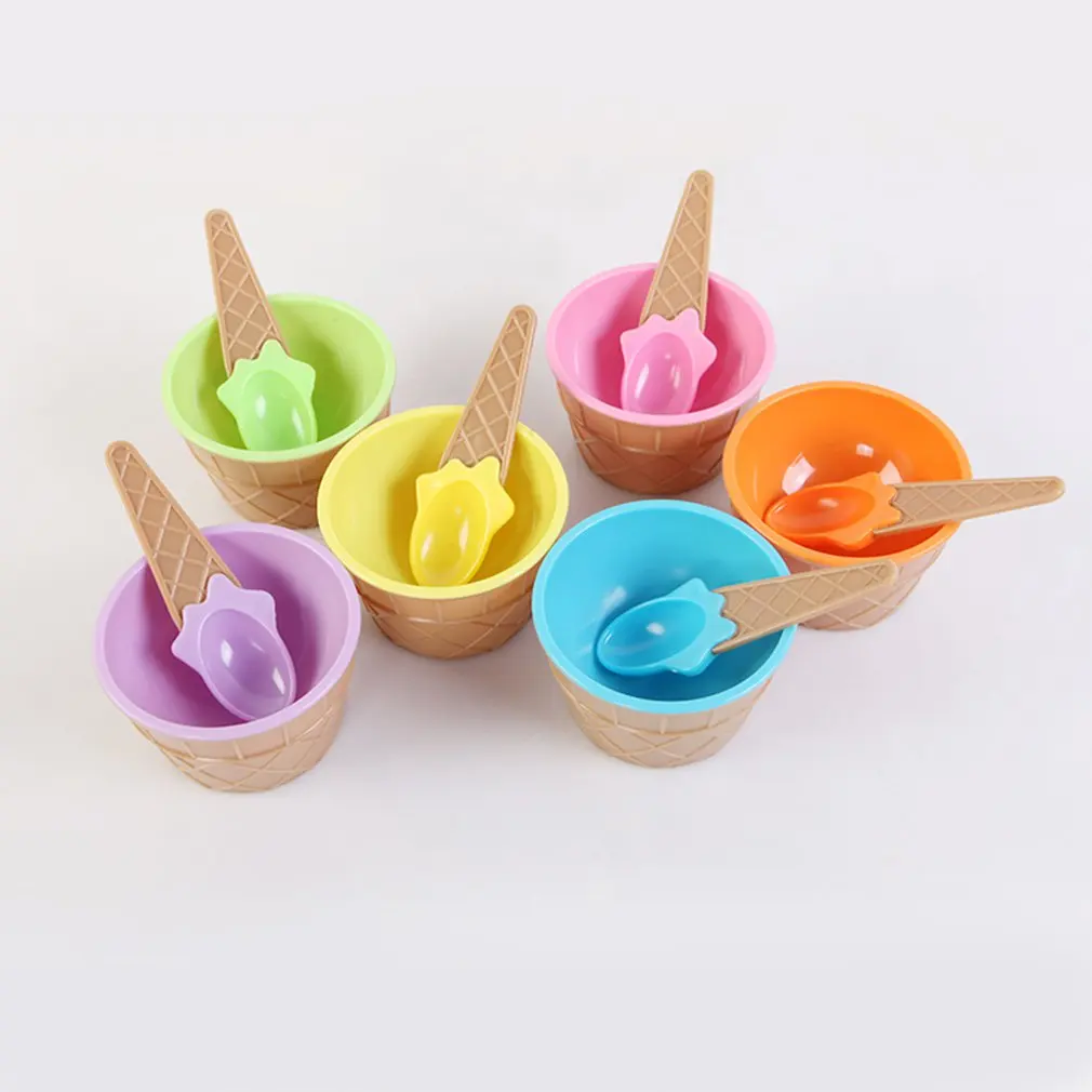 Прохладное лето: Креативный Набор чашек для мороженого: ложки конфетного цвета с ручками в форме печенья, толстые пластиковые миски в форме печенья с цветными чашами отлично подходят для мороженого, фруктов, салатов, это очень мило, привлекательный для вашей семьи, детей и друзей. Пусть Вас и Вашу семью охладит и освежит все лето.