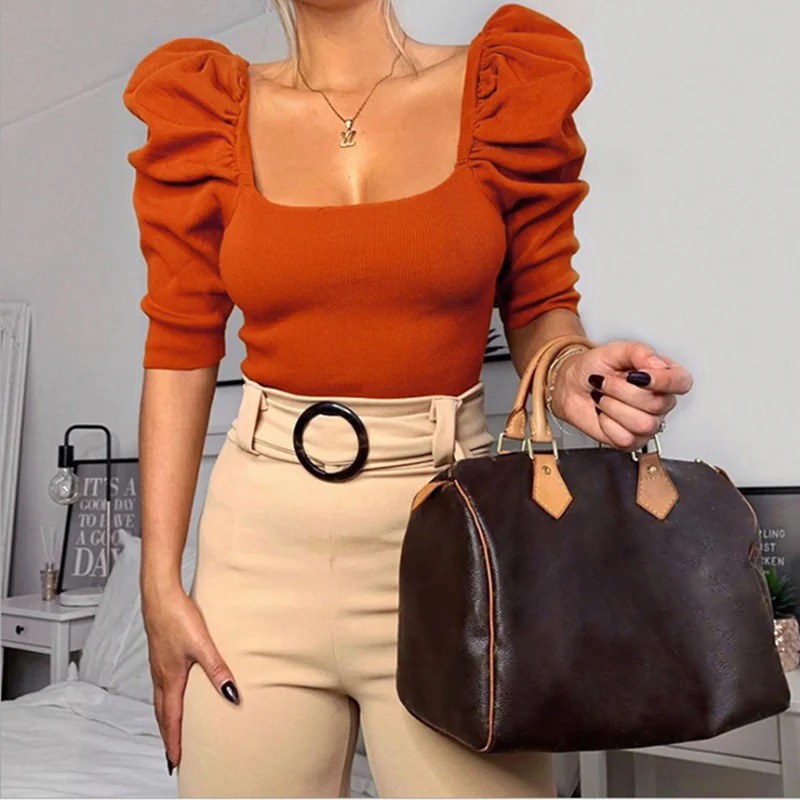 Трикотажная Футболка с рукавами-пузырьками и пятью точками 35% хлопок 60% полиэстер 5% спандекс Самый большой размер грамм вес: 0,13 кг