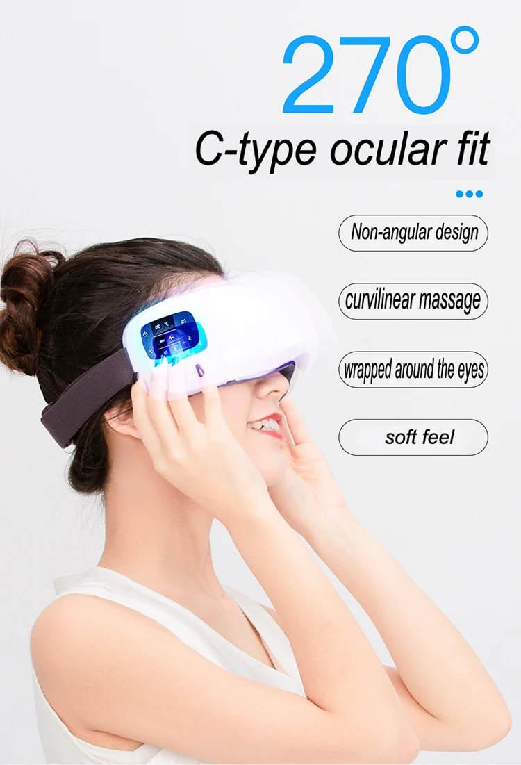 Массажер для глаз принимает умное давление воздуха, регулярно массируется и сжимается на важных точках глаз, чтобы очистить нервную систему и снять усталость. Он оказывает большое влияние на уменьшение тонких линий, выцветание темного круга и восстанавливает эластичность кожи. С помощью музыкального гида Вы сможете восстановить энергию примерно за 15 минут воспроизведения музыки.