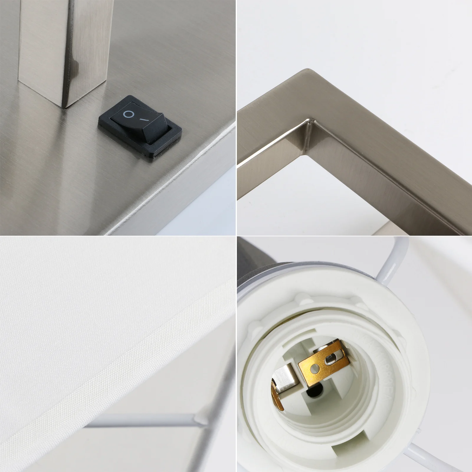 • Стиль: тканевый настенный светильник • Материал: металл + ткань • Отделка: хром, черный, матовый, античный • Потолочного светильника: 18 см (7,1 ") в ширину х 16,5 см (6,5") (высота) x 10 см (3,9 "). • Измерение Монтажная пластина основания: диаметр 15 см (5,9 ") • Монтажная пластина: с той же цветной монтажной пластиной, что и держатель лампы • Проводка: Жесткий провод к стене (требуется установка) • Характеристики гнезда: средняя Цоколь E27 (стандартный Размер) • Доступное напряжение 110-220 В. • Лампа: лампа в комплект не входит • Мощность лампы: 60 макс. мощность для использования с этим креплением. 40 Мощность те рекомендуется • Совместимый тип лампы: светодиод; Компактная флуоресцентная лампа (CFL); Галогенная лампа; Лампа накаливания. • Имеет одну розетку E27 и один переключатель ВКЛ/ВЫКЛ. Включение/выключение легко доступный переключатель, расположенный на пластинчатом основании, может управлять каждой розеткой отдельно, делает чтение в ночное время намного лучше. Только вертикальное. • Имеет простой белый прямоугольник тень ткани, ткань тени рассеивает светильник во всех направлениях, идеально подходит для светильник