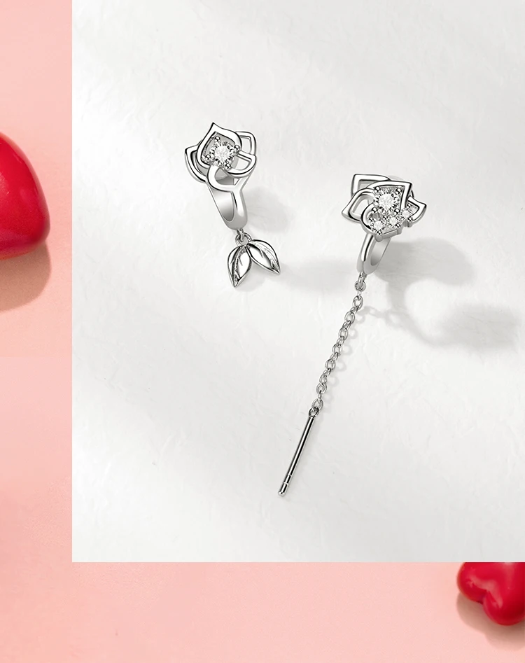 Thaya, 925 Стерлинговое Серебро, хрустальные романтические серьги с розой, клипсы, серьги-гвоздики на годовщину, циркониевые серьги для женщин, подарок, хорошее ювелирное изделие