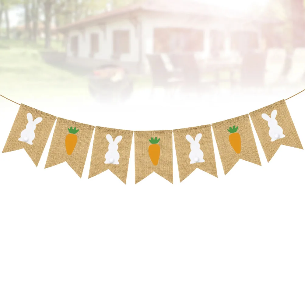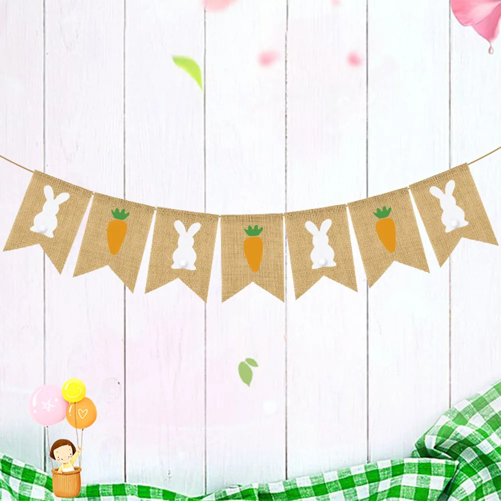 1 шт., пасхальное украшение, баннеры для вечеринки, милый кролик, печать, мешковина, баннеры, гирлянда, морковь и кролик, льняные флаги, товары для вечеринок