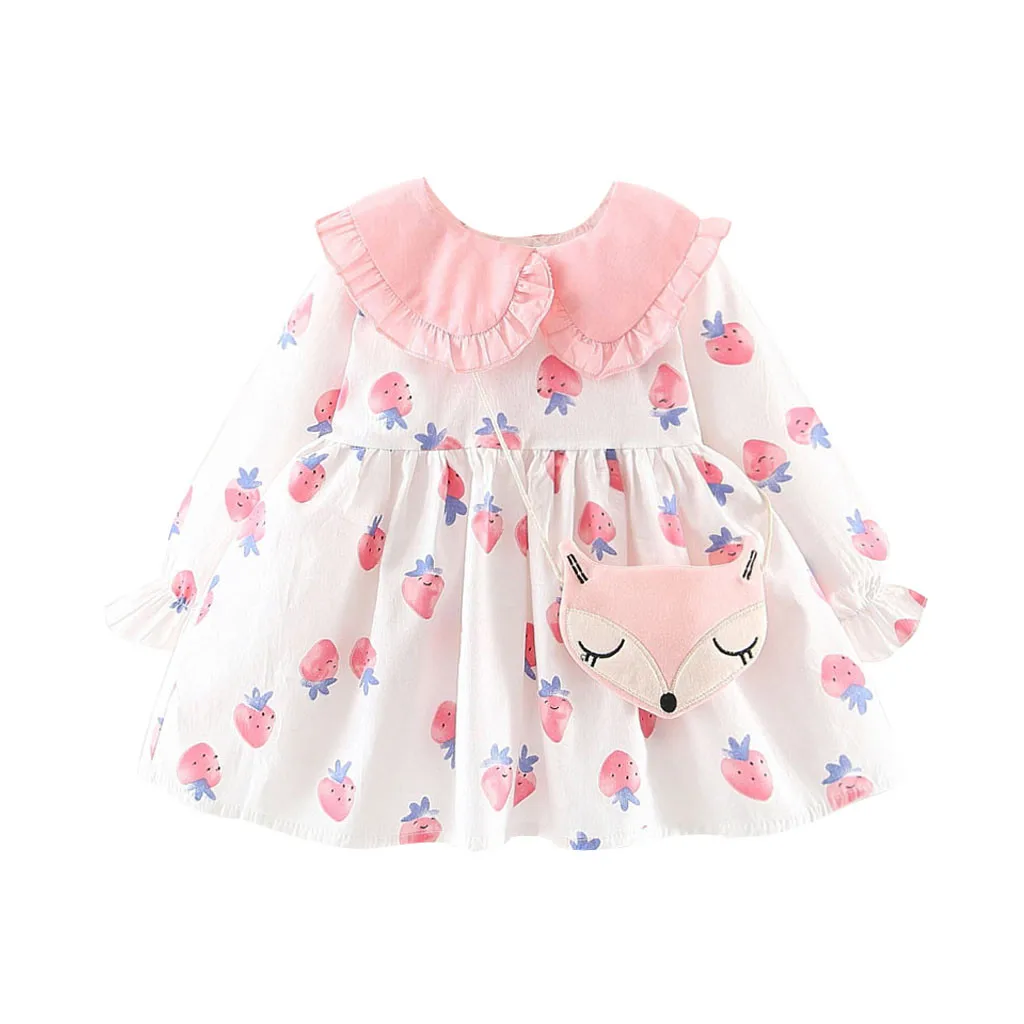 Детские Клубничные платья с оборками и кукольным воротником для маленьких девочек; Повседневная одежда