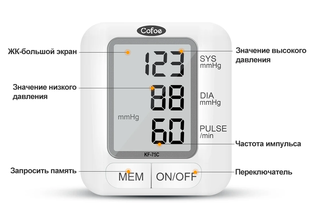 Название продукта: Cofoe цифровой монитор артериального давления на запястье Дисплей: большой светодиодный экран Наручные Размеры: 12,5*20 см Память данных: 192 набора Функция: проверка артериального давления и пульса