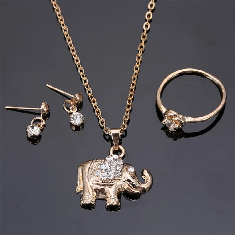 Слон: длина ожерелья 42 см, кулон 2,3*2 см, диам кольца 1,7 см, серьги 1,4 см