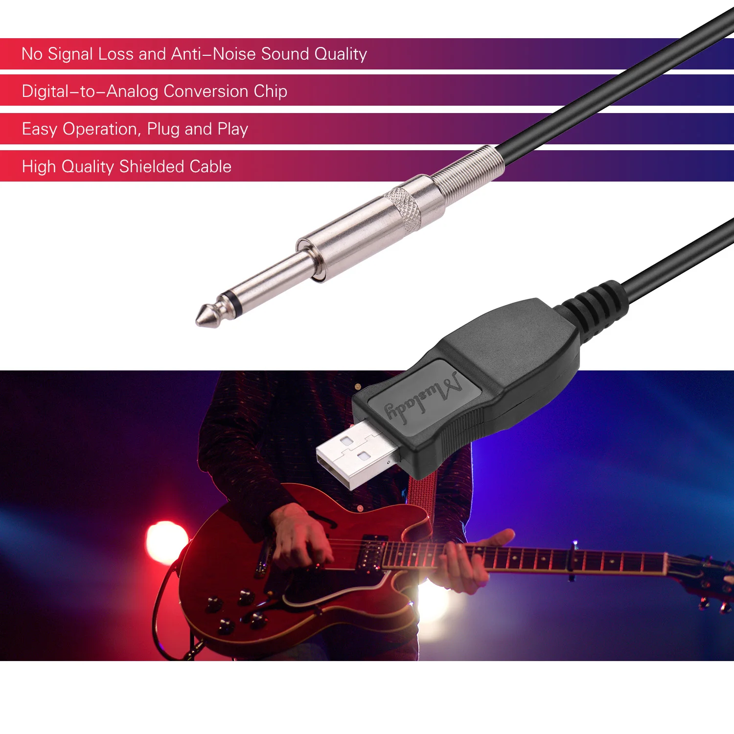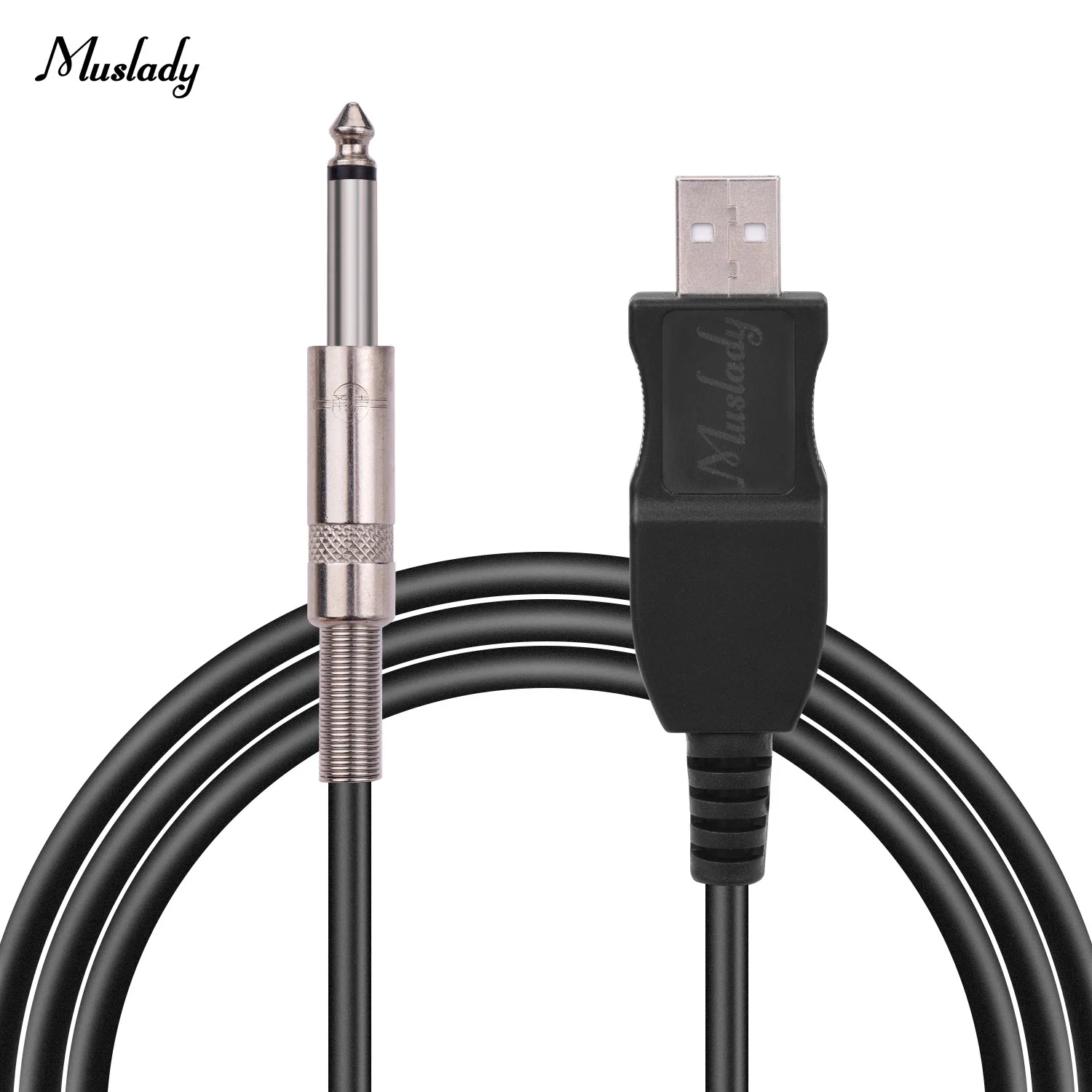 Кабель-конвертер Muslady USB на 6,35 мм предназначен для передачи сигнала электрогитары в компьютер, легко записывать и отрегулировать музыку.