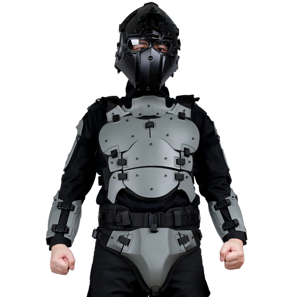 1. Огнестойкий ПК является более защитным: броня изготовлена из поликарбоната, который крепкий и не легко носить, и он взрывозащищенный 2. Надежная система нагрузки molle: плотная тесьма PAL на спине, которая может использоваться с тактическим оборудованием 3. Гибкий для ношения и плотно прилегает: эргономичный дизайн, удобно подходит для всех суставов, плечевых ремней, плечевых подушек и т. д. можно регулировать для гибкого движения 4. Особенности набора: Налокотники (регулируемый размер), протекторы груди (съемные и моющиеся), Регулируемая пряжка (подходит для разных групп людей), тактические поясные уплотнения (съемные и раздельные), охранники (защищают ваше место) 5. Можно использовать в качестве подарка для друзей, которые любят спорт на открытом воздухе 6. Когда холодно, вы можете носить для бега, который может эффективно потреблять жир Характеристики: 1. Цвет: BK/GY/TAN 2. Материал: Поликарбонат 3. Вес нетто продукта: 2500 г 4. Размер изделия: рост 165-190 см Посылка: 1 комплект х защитный костюмИзготовлен из поликарбоната. Защита от воздействия