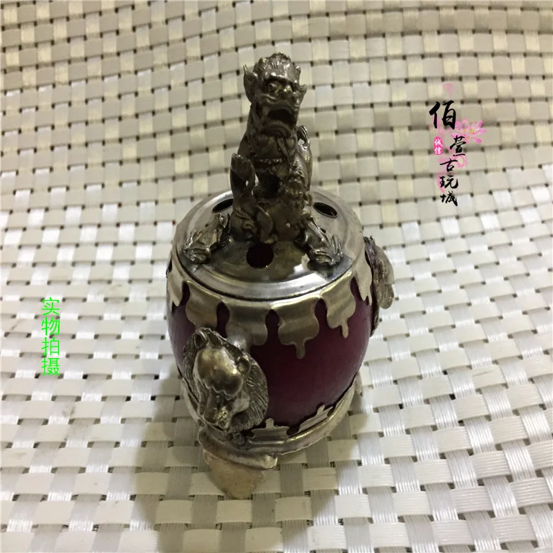 Античный белый медный миао серебро инкрустированный агат нефрит курильница серебро курильница со львом орнамент