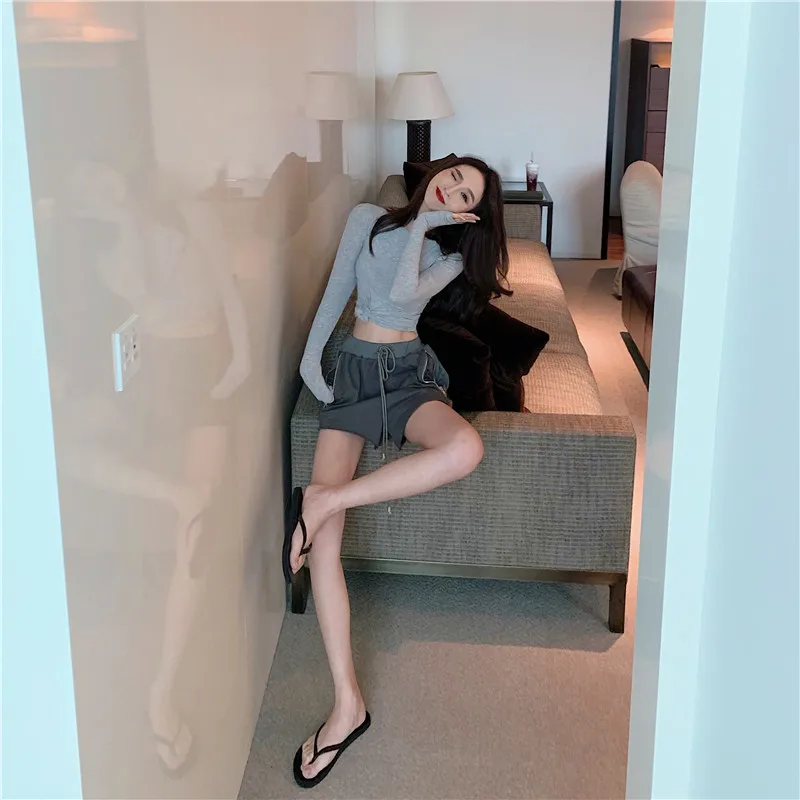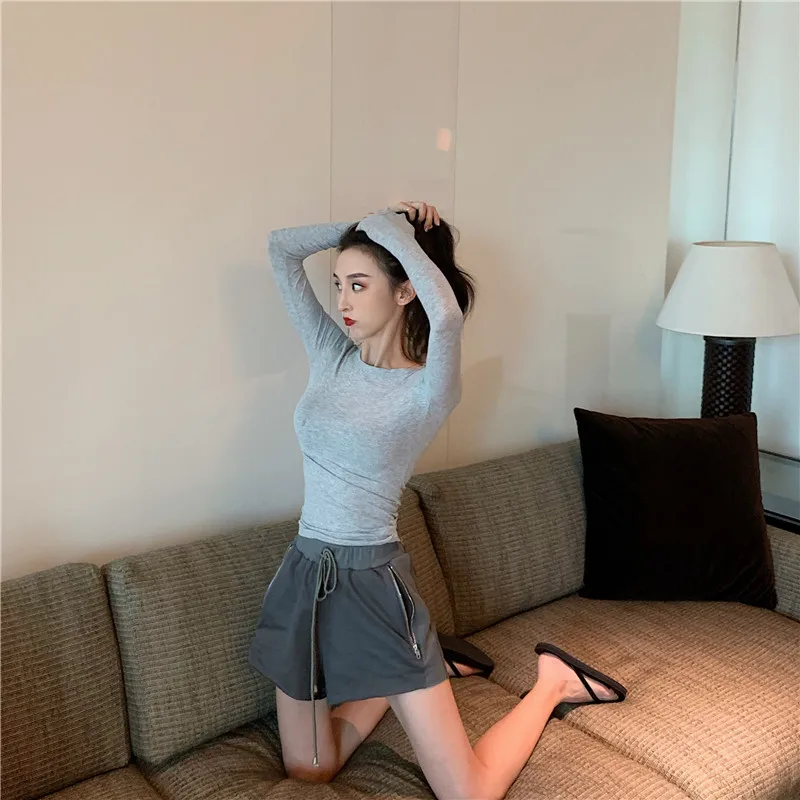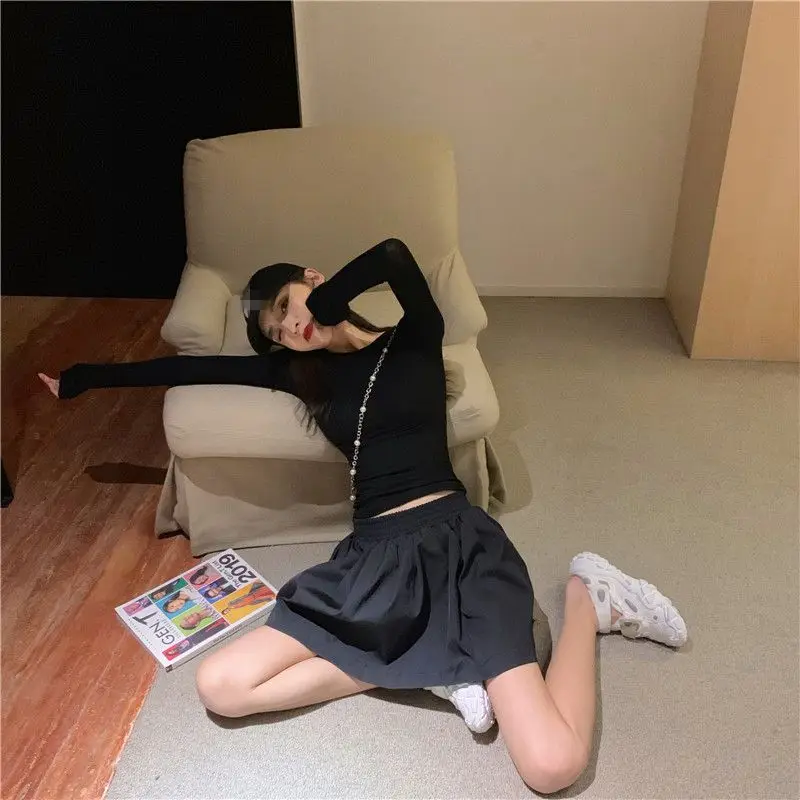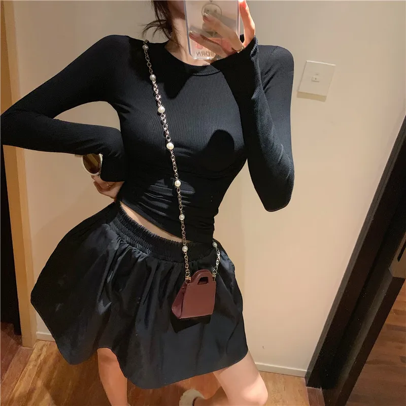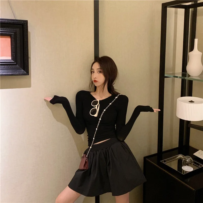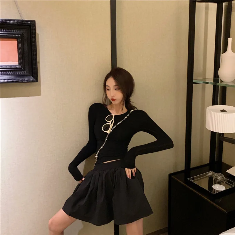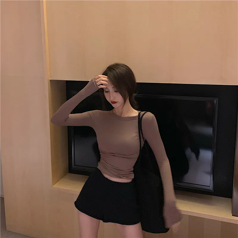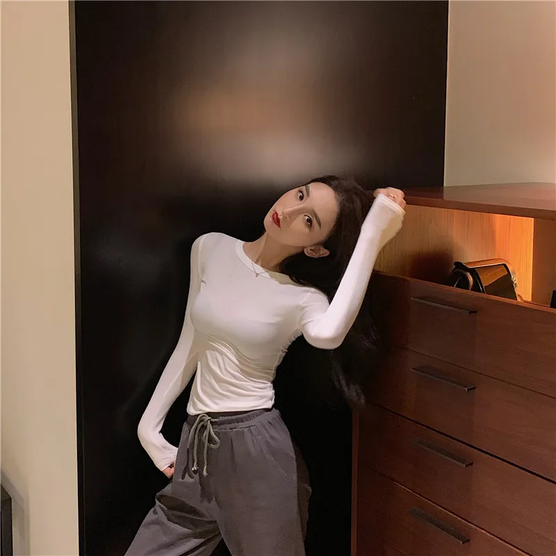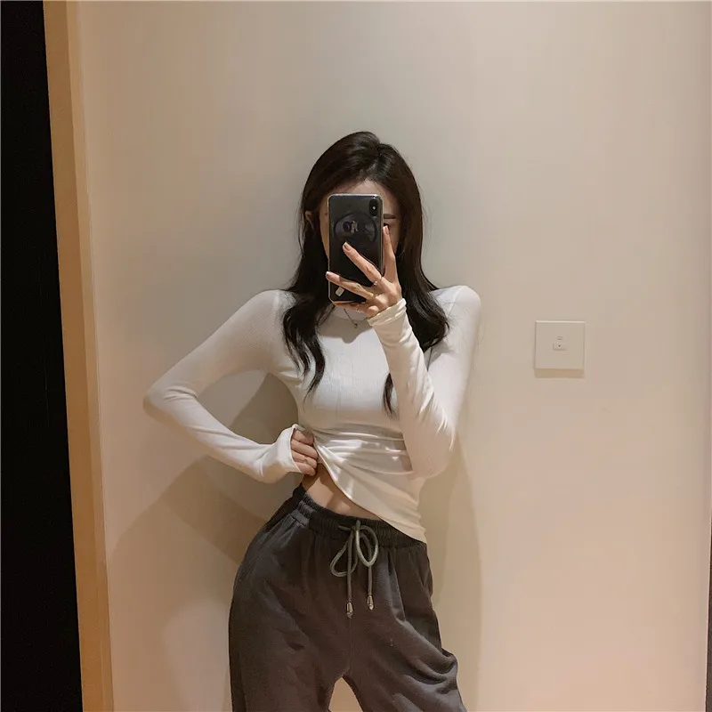 Женская футболка с длинным рукавом кружевная высоким воротником и деревянными