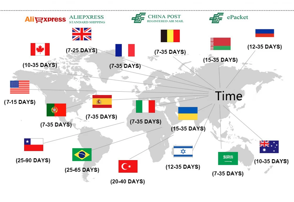 -Весь пакет будет отправлен с номером отслеживания в течение 1 ~ 2 рабочих дней (короткое время обработки и бесплатная доставка), Стандартная доставка AliExpress, ePacket и Авиапочта Китая-это наш сервис по умолчанию, пожалуйста, свяжитесь с нами, если вы хотите отправить другую доставку.