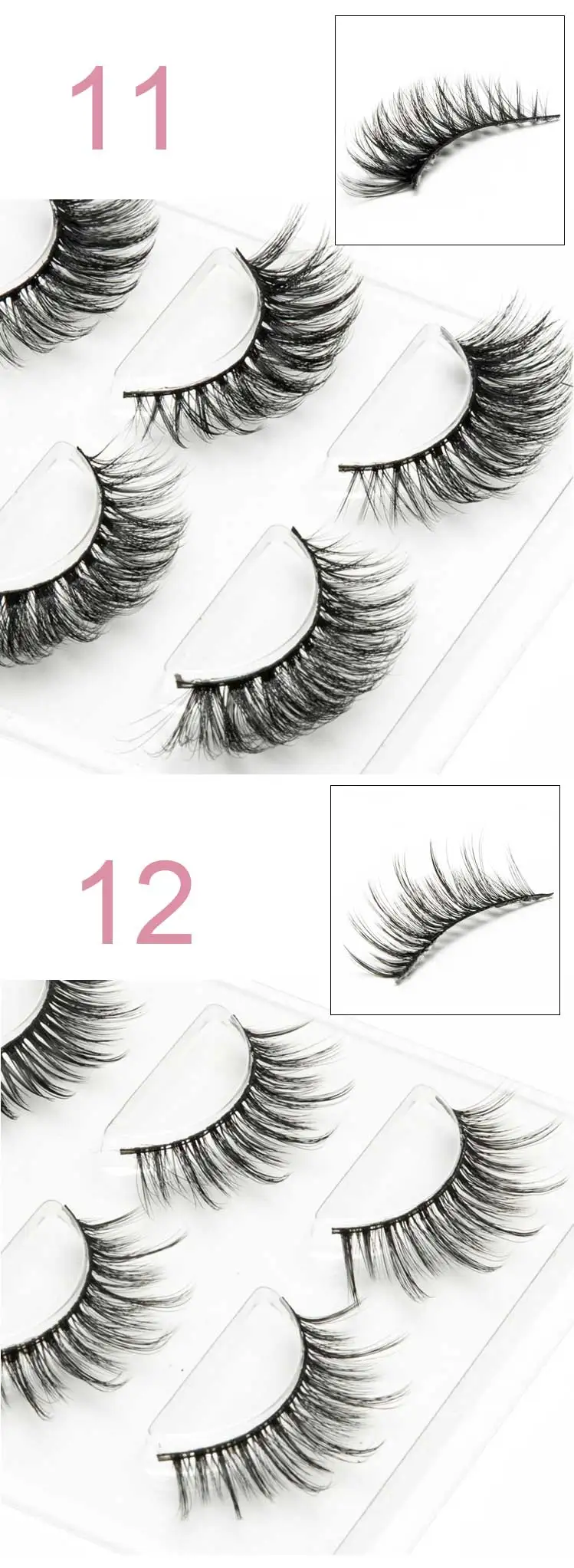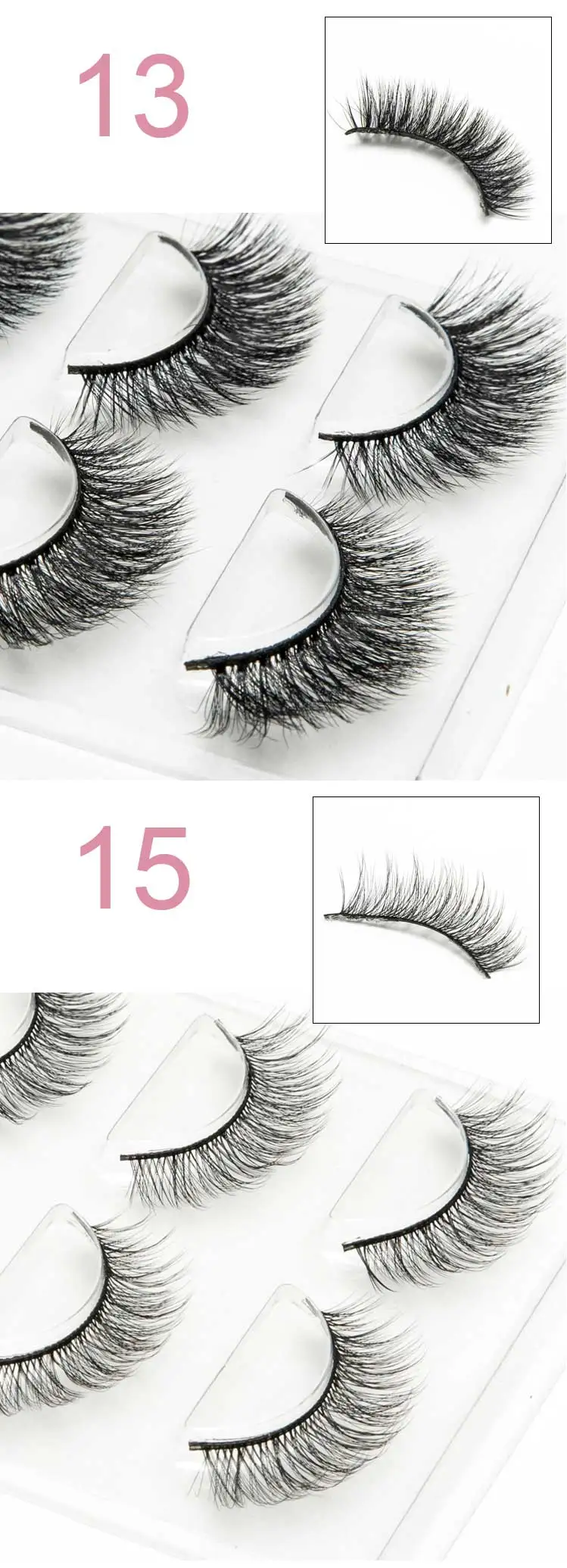 Изделие: 3 пары 6D накладных норковых волос. Материал: Искусственные норковые волосы, которые чувствуют себя мягкими, как норковые волосы. Особенности: гламурный, пушистый, многослойный, ручной работы, многоразовый. Цвет: черный Тип: полные полосы ресниц Длина: около 15 мм Количество: 3 пар/кор. Посылка включает в себя: 3 пар/кор. натуральные длинные накладные норковые ресницы