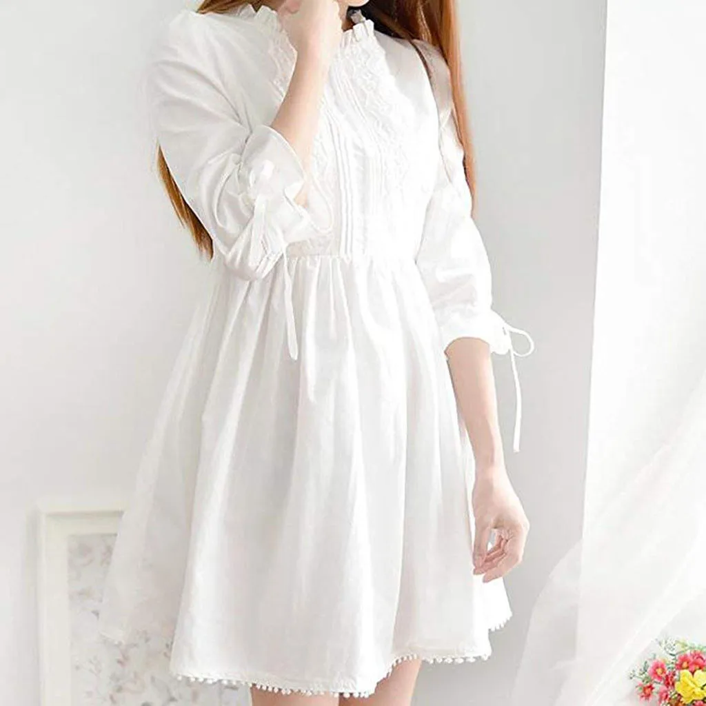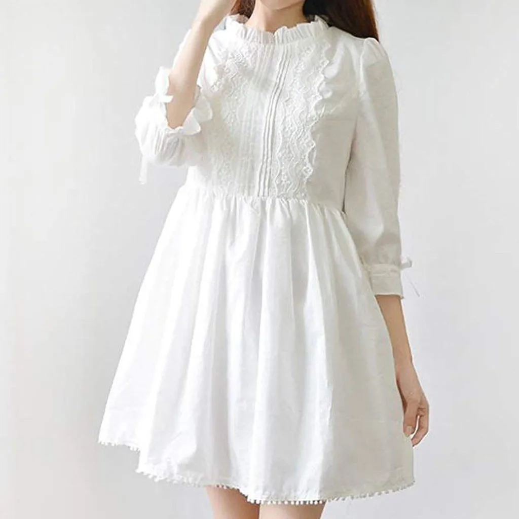 White Dress Lovely Sweet Girl Japanese Style Lace Dress Summer White Skirt