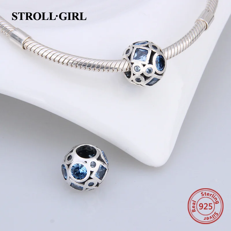 Прекрасный новый 925 стерлингового серебра коллекции круглые бусины из голубого