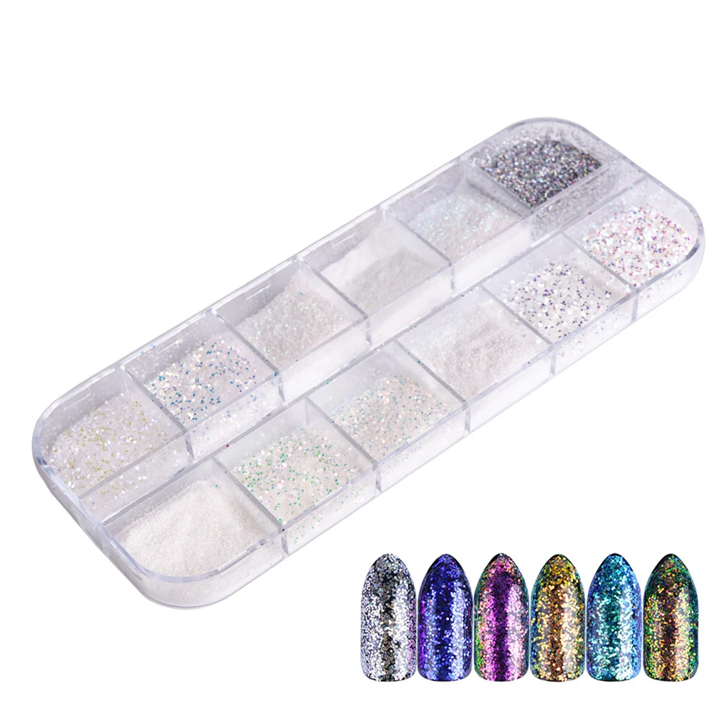 12 Сетки AB красочные сахара тонкая пудра блестки 3D сделай сам ультра-тонкие блестки для нейл Арта (искусство украшения ногтей)