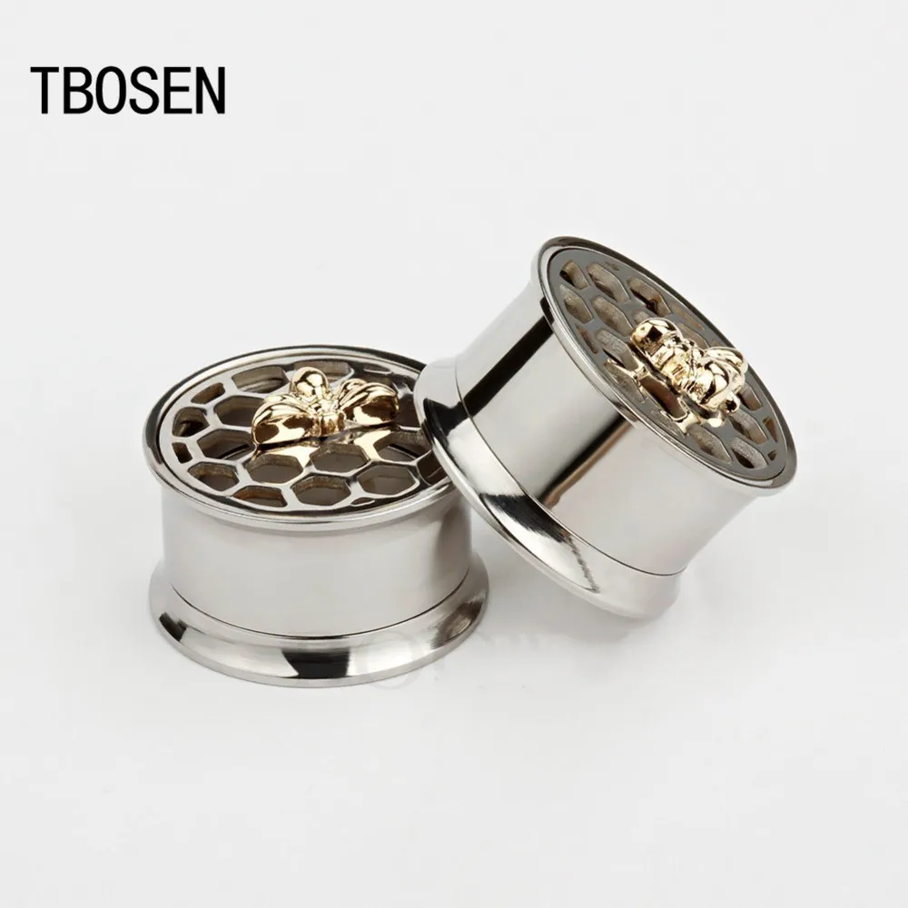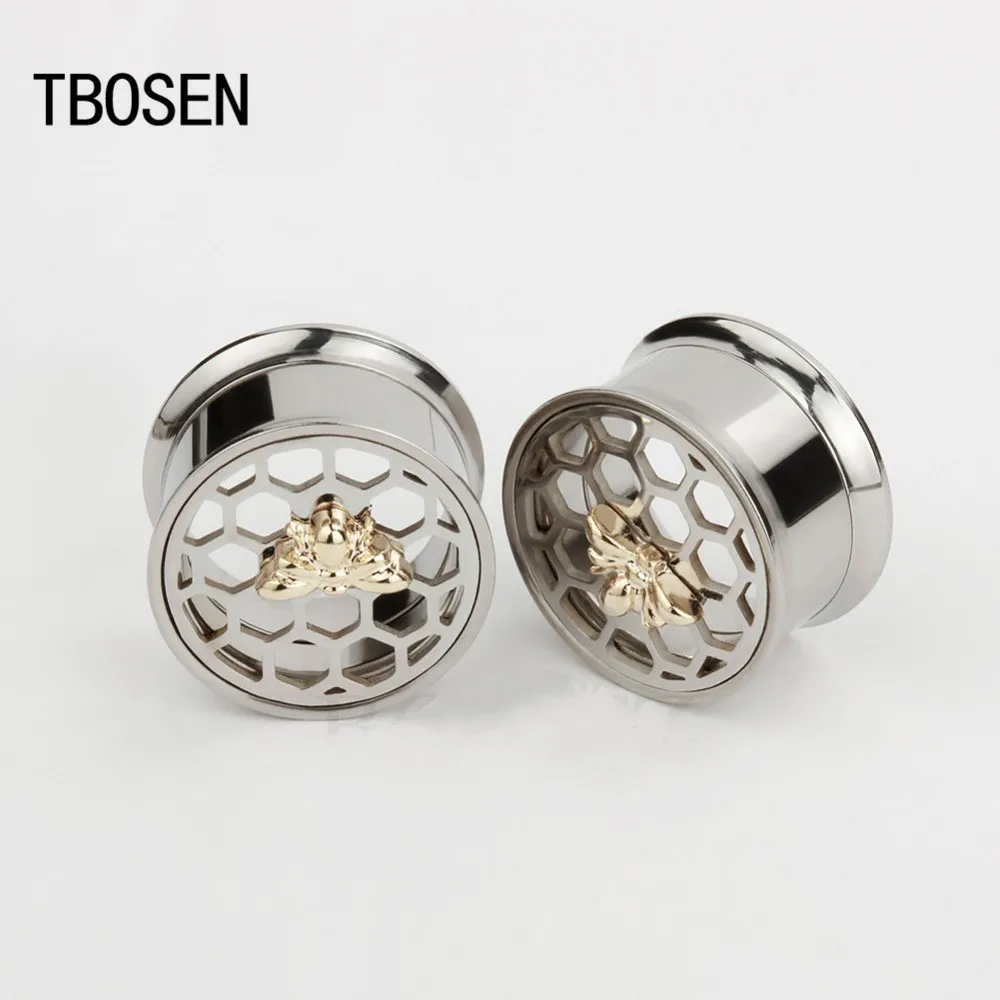 New arrival Honeycomb 316L stainless steel Ear Gauges Piercing Plugs Tunnels Silver Earrings Flesh Body Jewelry Gift For Men