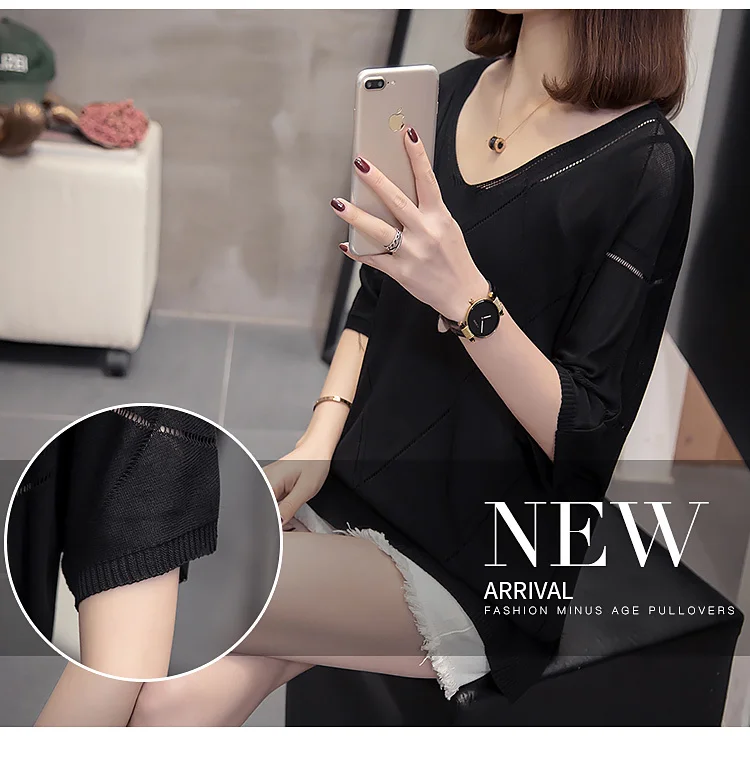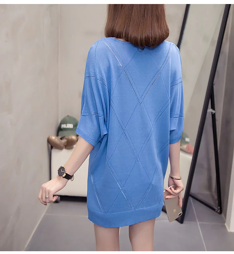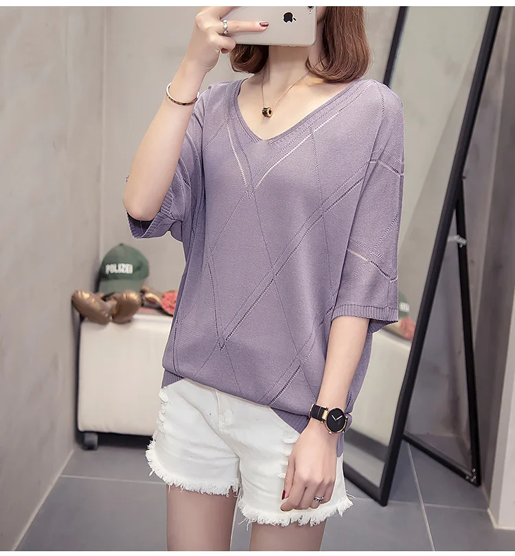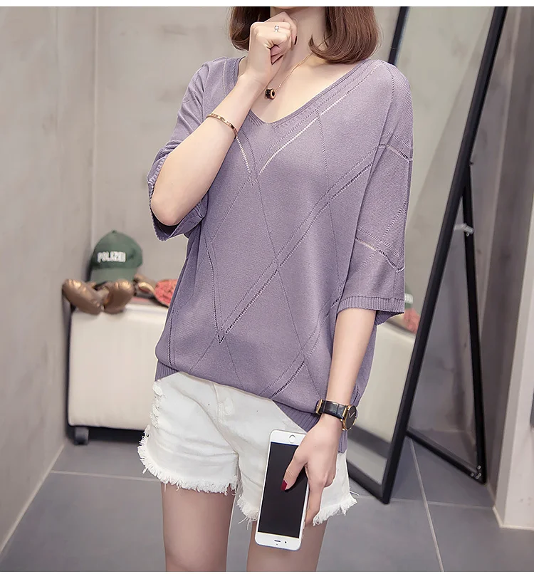 Женский трикотажный пуловер с V-образным вырезом рукавом до локтя | Женская